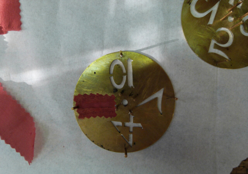 Dopełnieniem dekoracji mebla są wykonane w różnych technikach elementy metalowe, takie jak złocone okucia, zamki i rzeźba. Prace przy ich powstawaniu prowadzone były przez specjalistów odlewników, którzy po dostarczeniu modeli zaproponowali najlepsze współczesne metody ich rekonstrukcji. Większość odlewów metalowych została zrekonstruowana tak, jak robiono to w XVII wieku, czyli metodą na tzw. wosk tracony. Polega to na tym, że forma oryginalnego elementu odwzorowywana jest w wosku, który po zaformowaniu jest wytapiany, a w jego miejsce wlewany jest płynny metal. Tym sposobem wykonano wszystkie listewki, którymi obramowane są płyciny kamienne oraz miniatury malarskie.