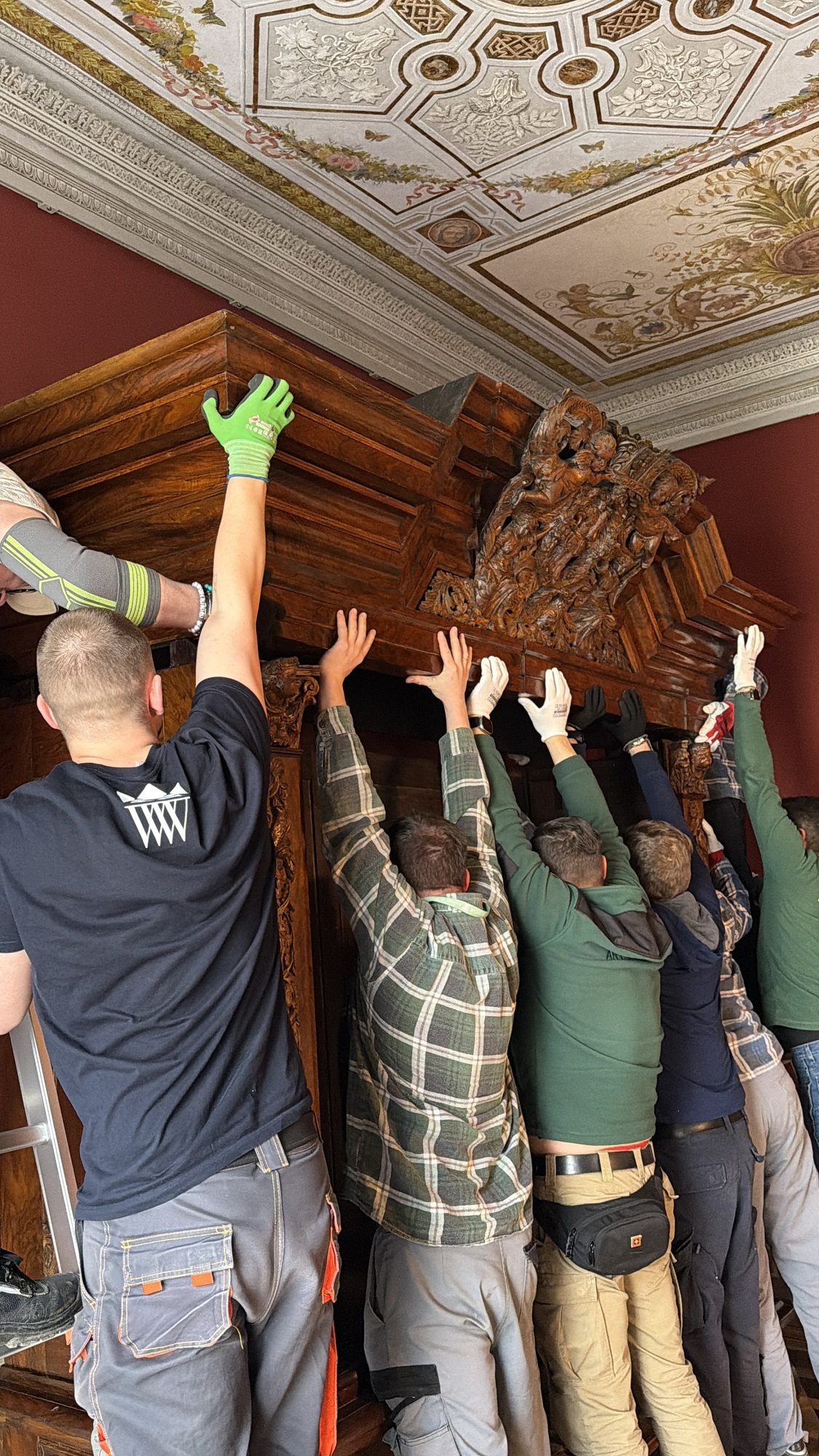 Mebel jest naprawdę imponujący. Ma 278 centymetrów wysokości, 245 centymetrów szerokości i 78 centymetrów głębokości. Jej ciężar najlepiej odczuli ci, którzy przenosili jej elementy – sześć osób niosło samą nastawę, zanim została ponownie zamontowana.