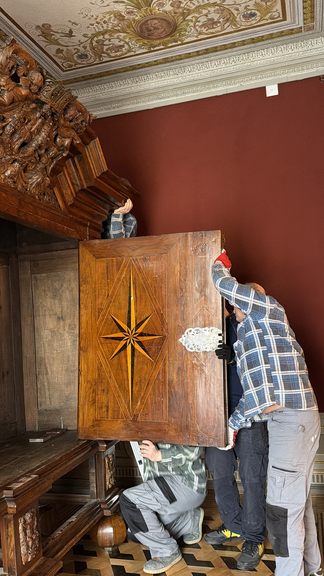 Ten powrót ma także wymiar symboliczny. Za czasów Potockich Aleksandra Potocka stworzyła w Wilanowie historyzującą ekspozycję, gromadząc pamiątki i dzieła sztuki, takie jak „szkatuła Marii Kazimiery” czy obrazy dawnych mistrzów. Dzisiejsza aranżacja, nad którą właśnie pracujemy, nawiązuje do jej pierwotnego zamysłu. Szafa nie jest już tylko meblem – znów staje się częścią opowieści o miejscu, jego historii i ludziach, którzy z pasją je tworzyli.