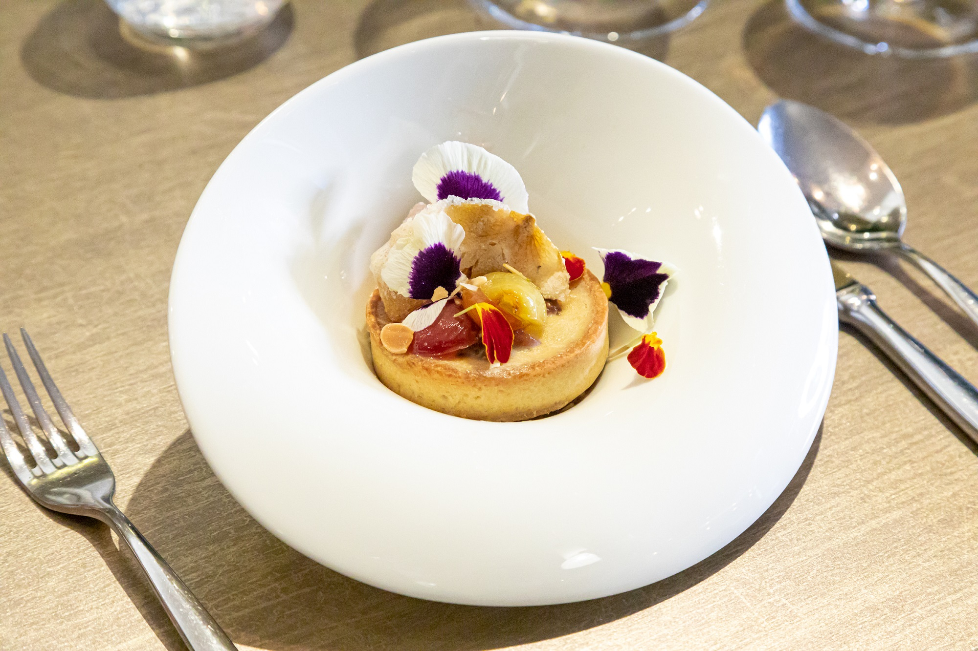 • pierś perliczki w pistacjach na musie szparagowym z kiszoną cytryną,