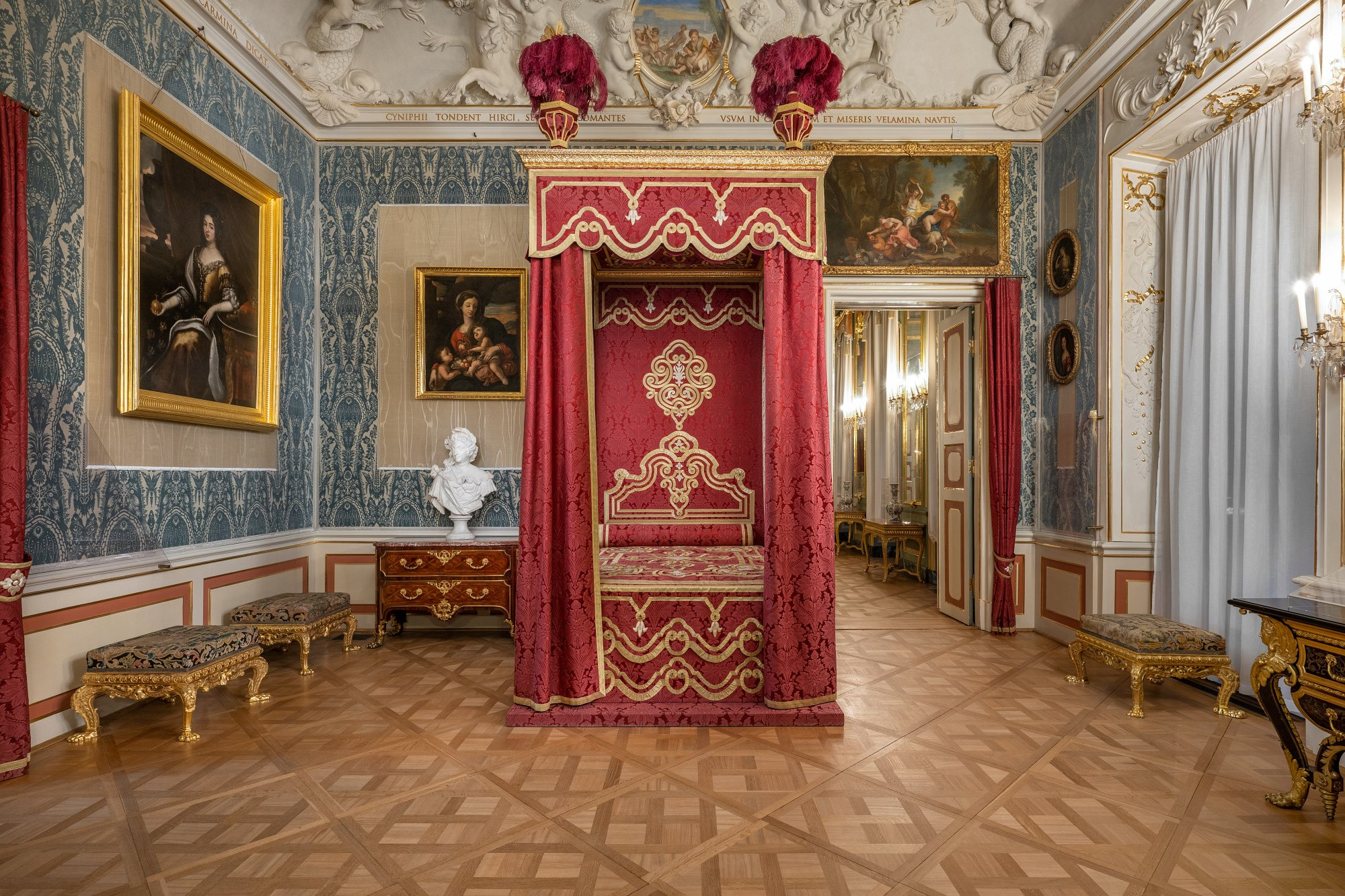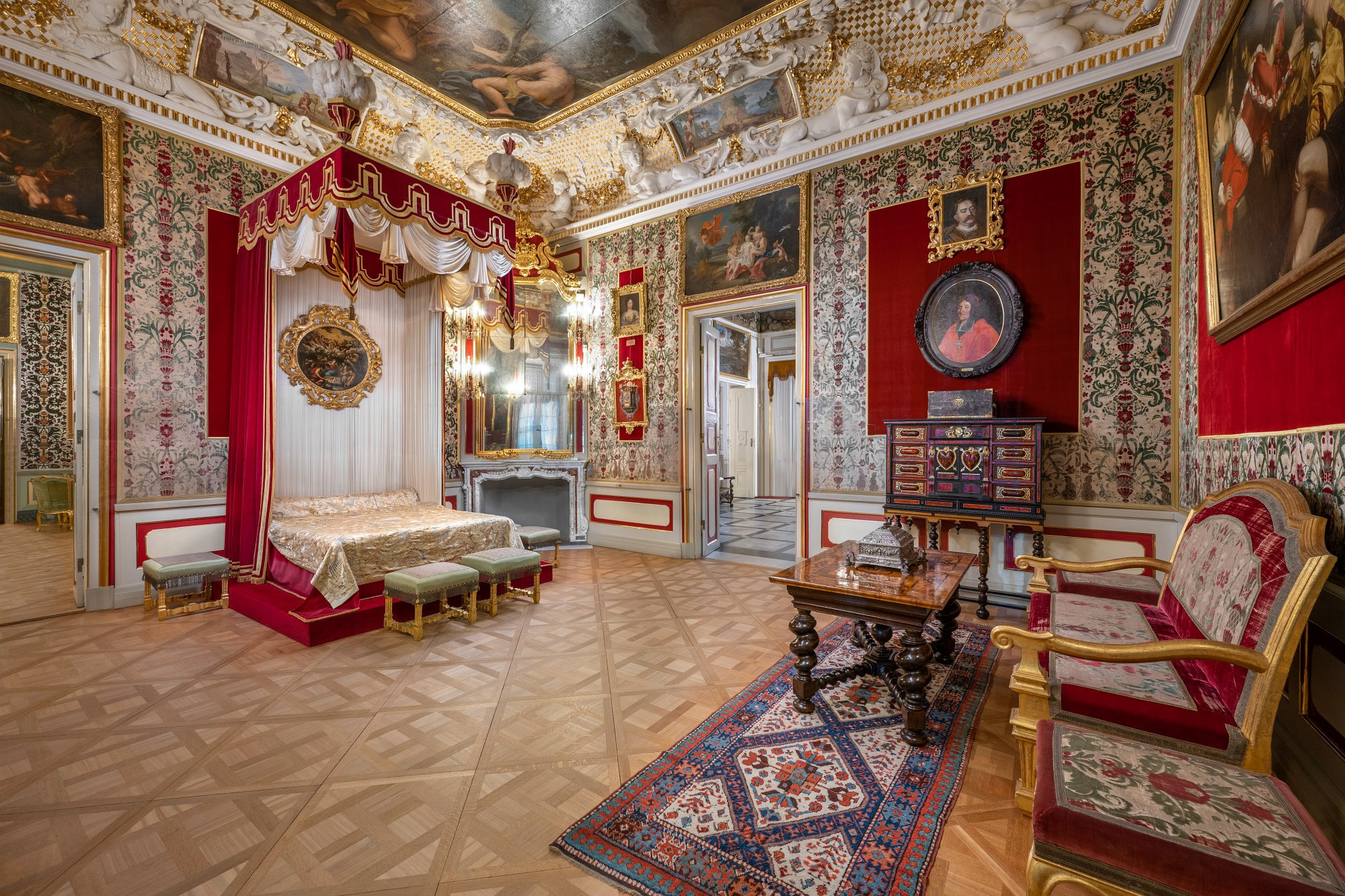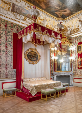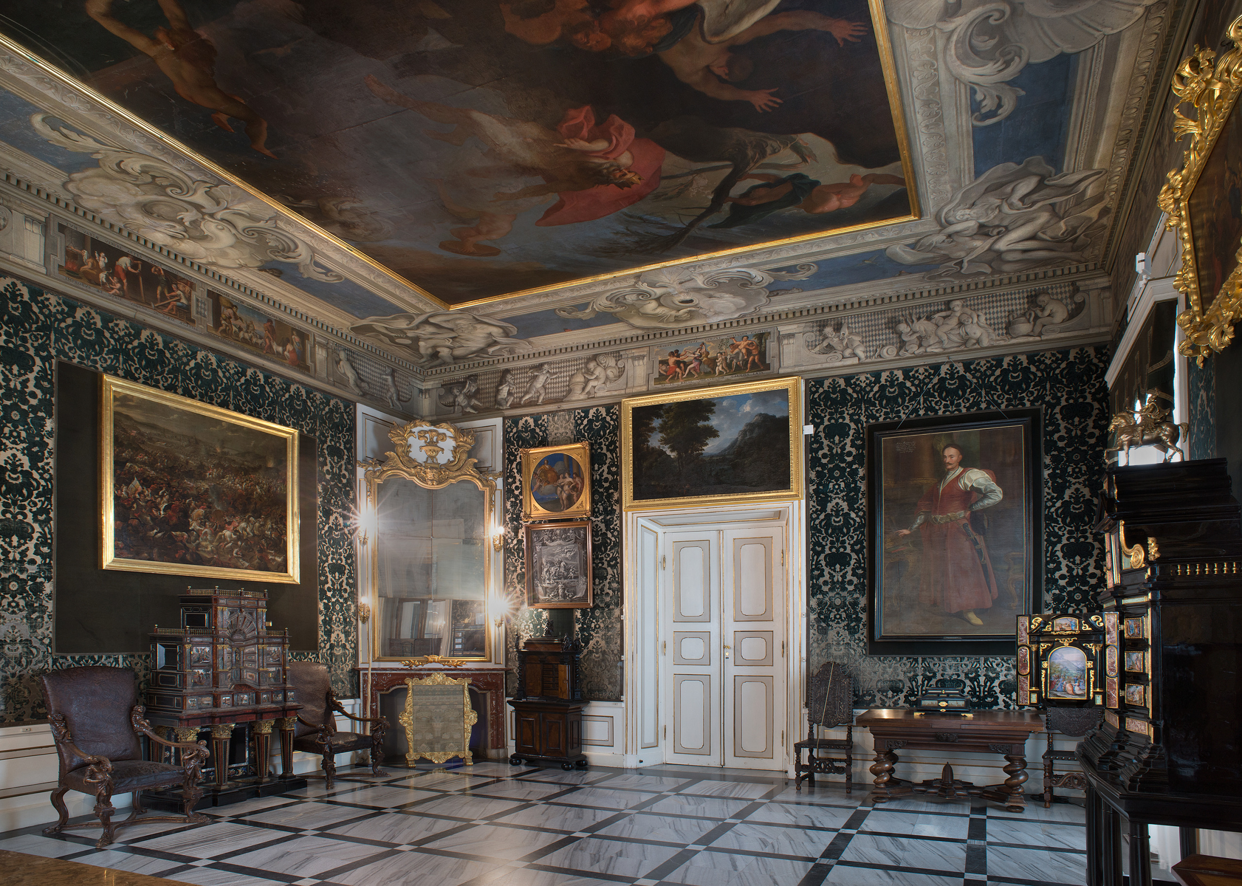 In line with the spirit of the era, the King's apartments had a representative character; they were meant to dazzle the guests who visited the ruler here. An antechamber preceded the bedroom in which audiences took place. In the decor of the rooms, official and political themes intertwine with private ones. Complex content is expressed through mythological stories, which were the universally understood language of the elites of the former Polish-Lithuanian Commonwealth.