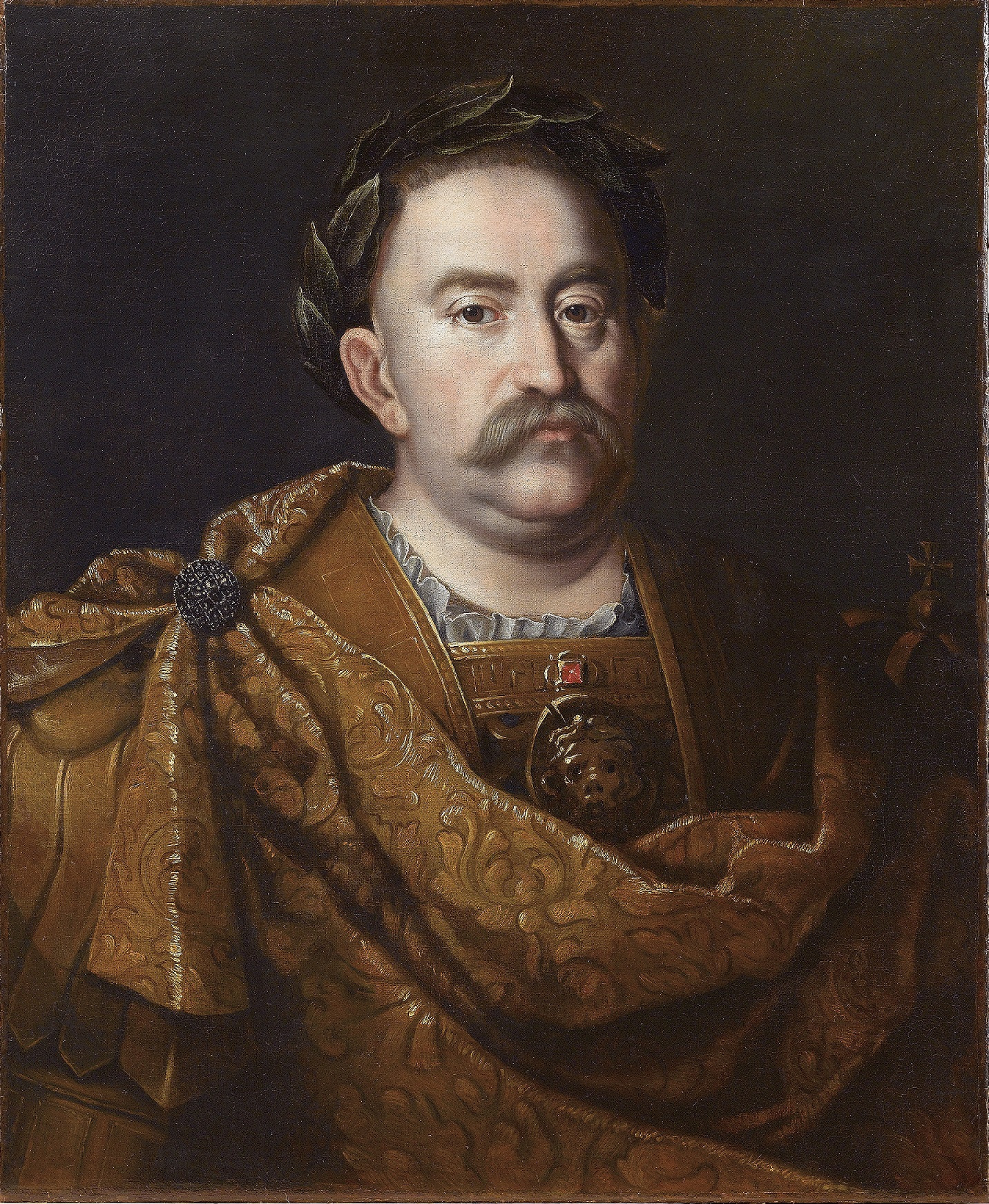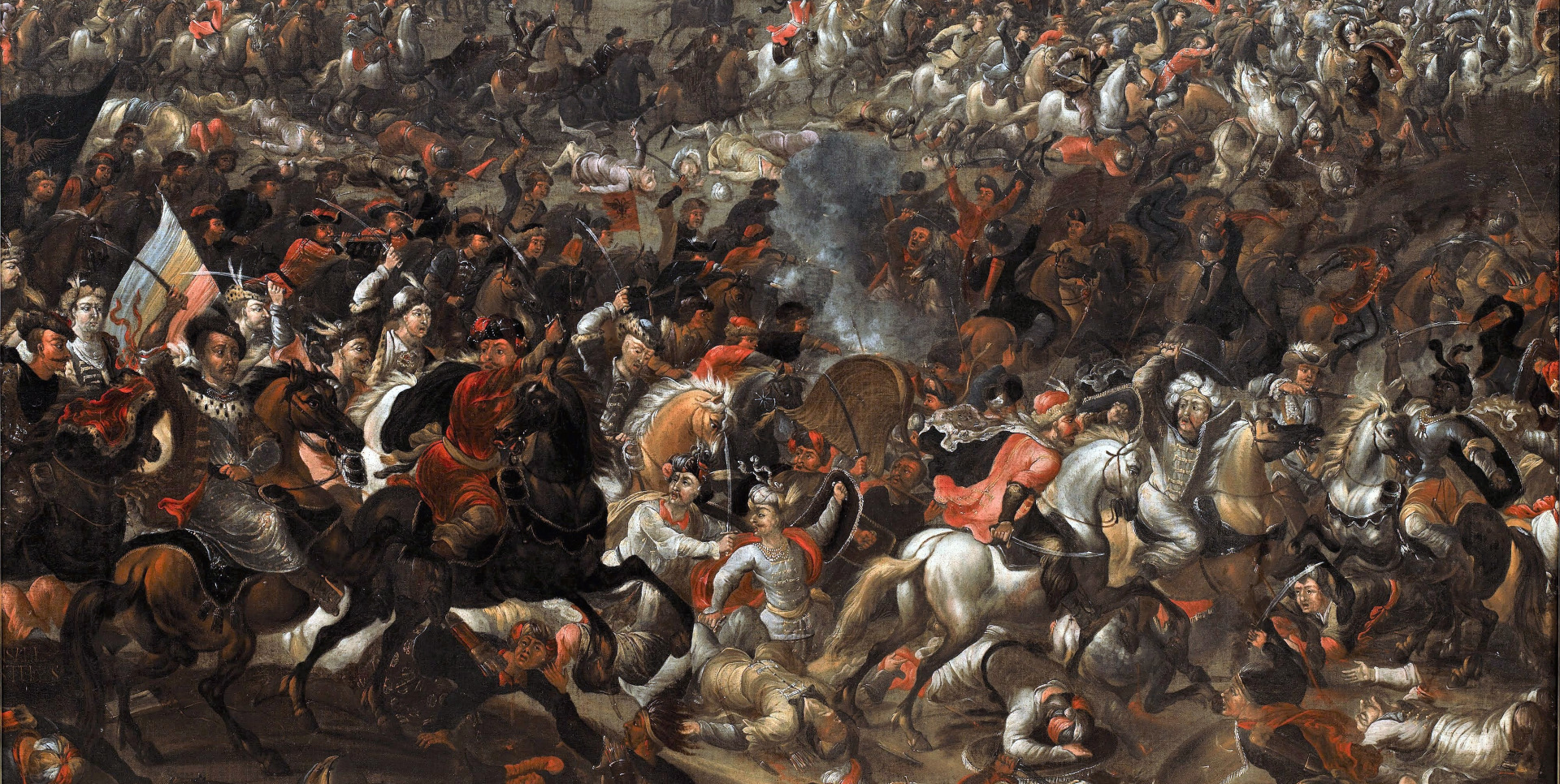 The scene of the battle between the anti-Turkish coalition troops and the Ottoman army commanded by the Grand Vizier Kara Mustafa is set against a hilly landscape, with a panorama of Vienna surrounded by a ring of fortifications visible in the distance. In the melee, the figure of King Jan III, who, according to preserved reports was the supreme commander of the allied armies, draws attention. This painting by Gonzales Franciscus Casteels is a testimony to the pan-European fame of the heroic deeds of the great Polish monarch.