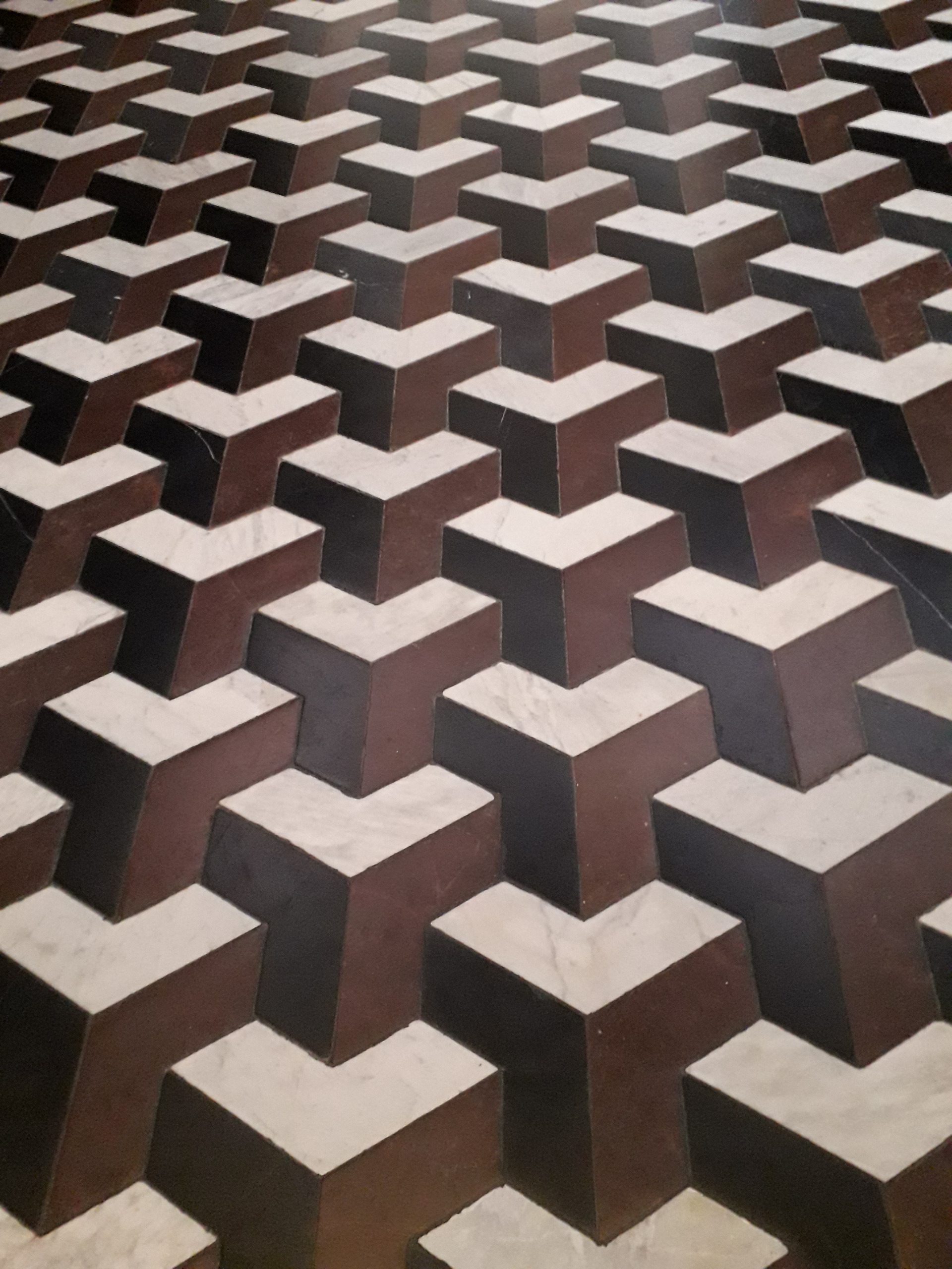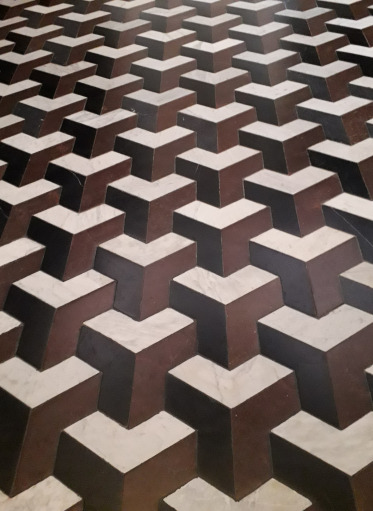 This is the oldest preserved floor in the Wilanów Palace, dating back to the last quarter of the 17th century, so it certainly served Jan III and his family. It is made of polygonal marble tiles in three colours. Thanks to the ingenious way they were arranged, it was possible to achieve the illusionistic effect of three-dimensionality.