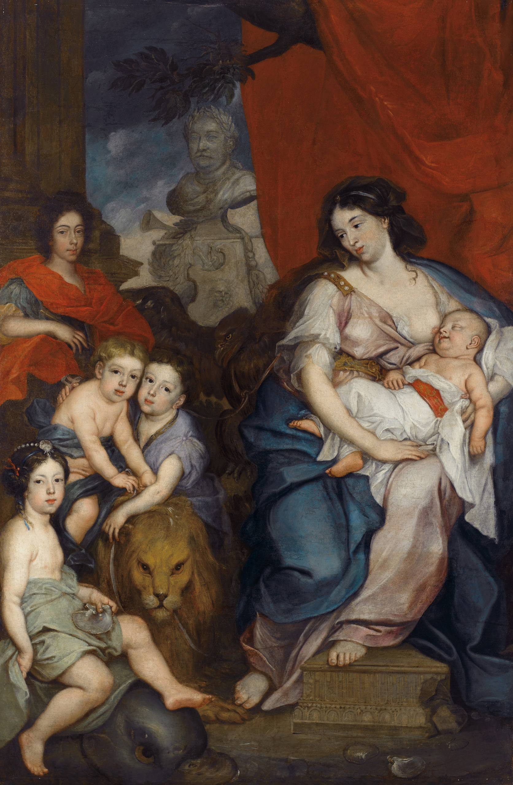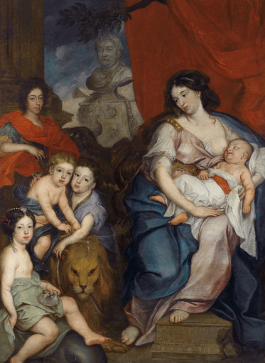 One of the most beautiful, allegorical Baroque portraits depicts Maria Kazimiera with a baby at her breast, surrounded by children, Jakub, Aleksander, Konstanty, and Teresa Kunegunda. Pictured as the goddess of motherhood, she becomes the founder of the royal Sobieski dynasty.