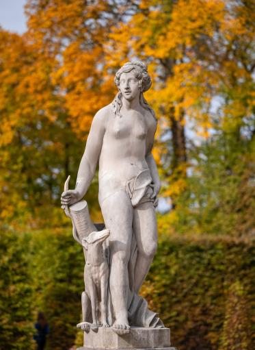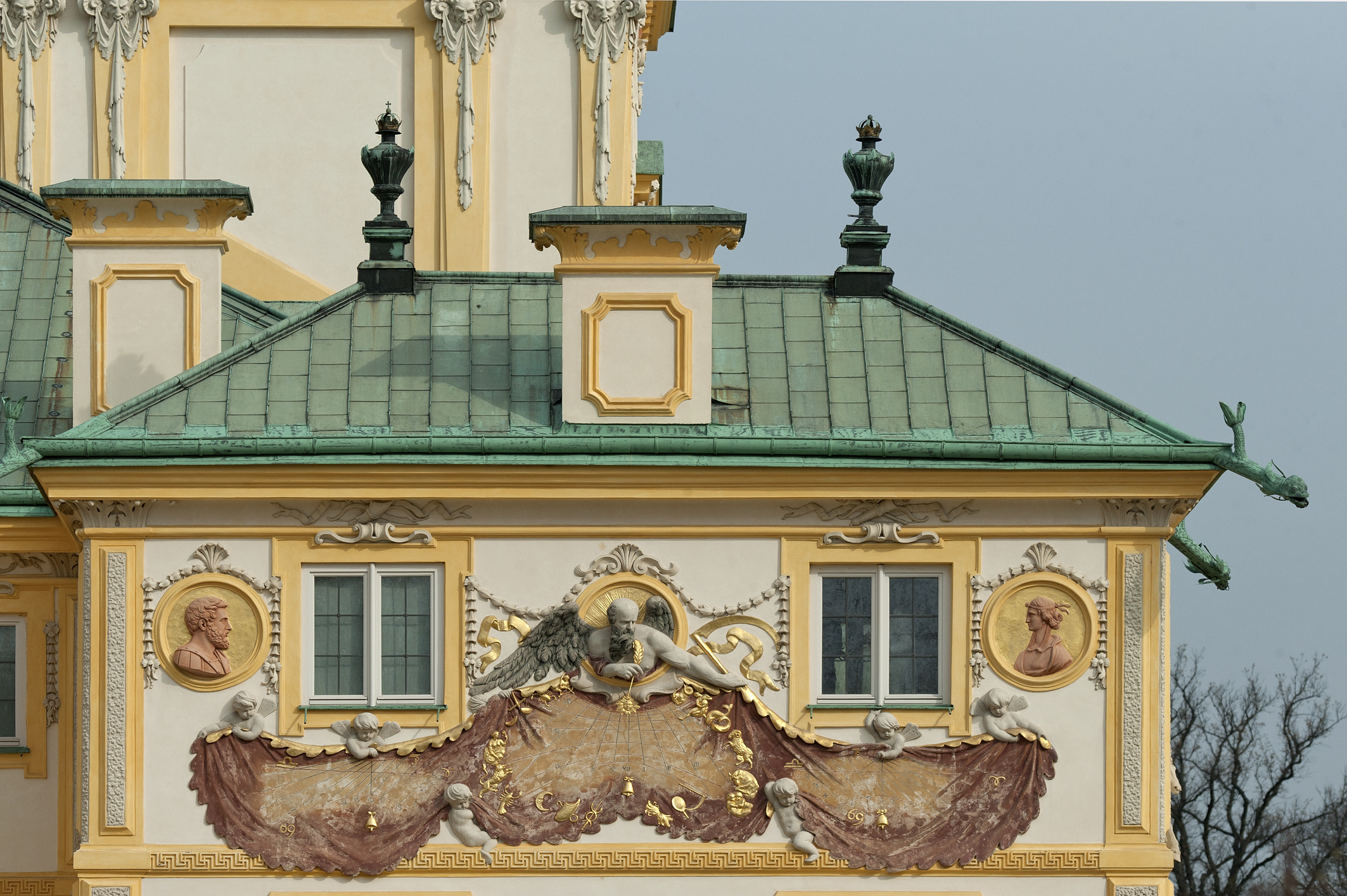 Around the Palace, magnificent gardens with grand carpets of flowers, decorated with sculptures and elements of garden architecture, a grange with outbuildings, and a menagerie were established. In the rich program of decoration of the façades and Palace interiors, we can still admire the power of the original message created by Jan III, who himself decided on the choice of themes and architectural forms of buildings. This highly educated monarch drew on ancient traditions in a way which was legible to his contemporaries, constructing an image of a ruler whose virtues contribute to the well-being of the Commonwealth and its inhabitants. This is why in the decorations we see so many mythological themes and statues of muses, the patrons of the liberal arts, and portraits of Roman emperors and heroes. There are also many themes related to love, because Wilanów was the home of a loving couple – Jan and Maria Kazimiera Sobieski, who together raised four children.