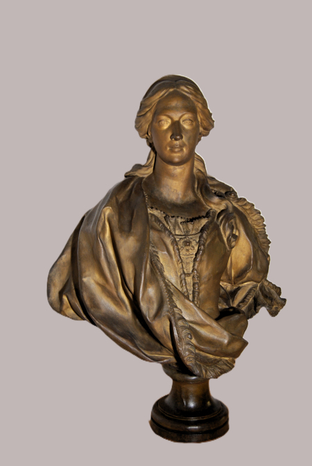 While there are numerous well-known painted portraits of the Polish noblewoman, our bust appears to be unique in sculpture. The young Maria Clementina wears a regal dress typical of the Polish nobility: a fur-trimmed cloak, a corset and a shirt embellished with a jewel in the centre. The portrait is both idealised and naturalistic. The curly white wig found in many paintings is absent; her long hair is loose on one side and partly gathered into an elegant chignon. This bust, created with soft lines and a gentle expression, gives us an image of the queen that seems to celebrate her virtues.