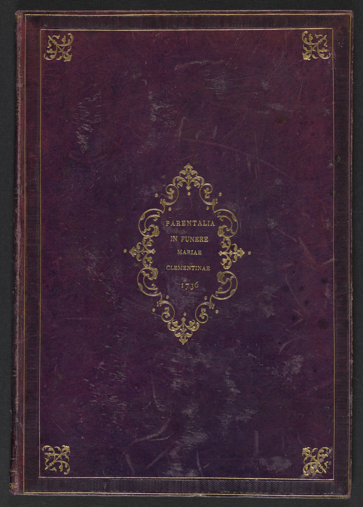 In 1736, Giovanni Maria Salvioni’s publishing house in Rome released a bilingual print entitled Parentalia Mariae Clementinae Magn. Britan. Franc. et Hibern. Regin. Jussu Clementis XII Pont. Max, a memorial to Clementina, who died on January 18, 1735, containing her biography and a detailed description of the grand funeral ceremonies organised in Rome at the behest of Pope Clement XII.