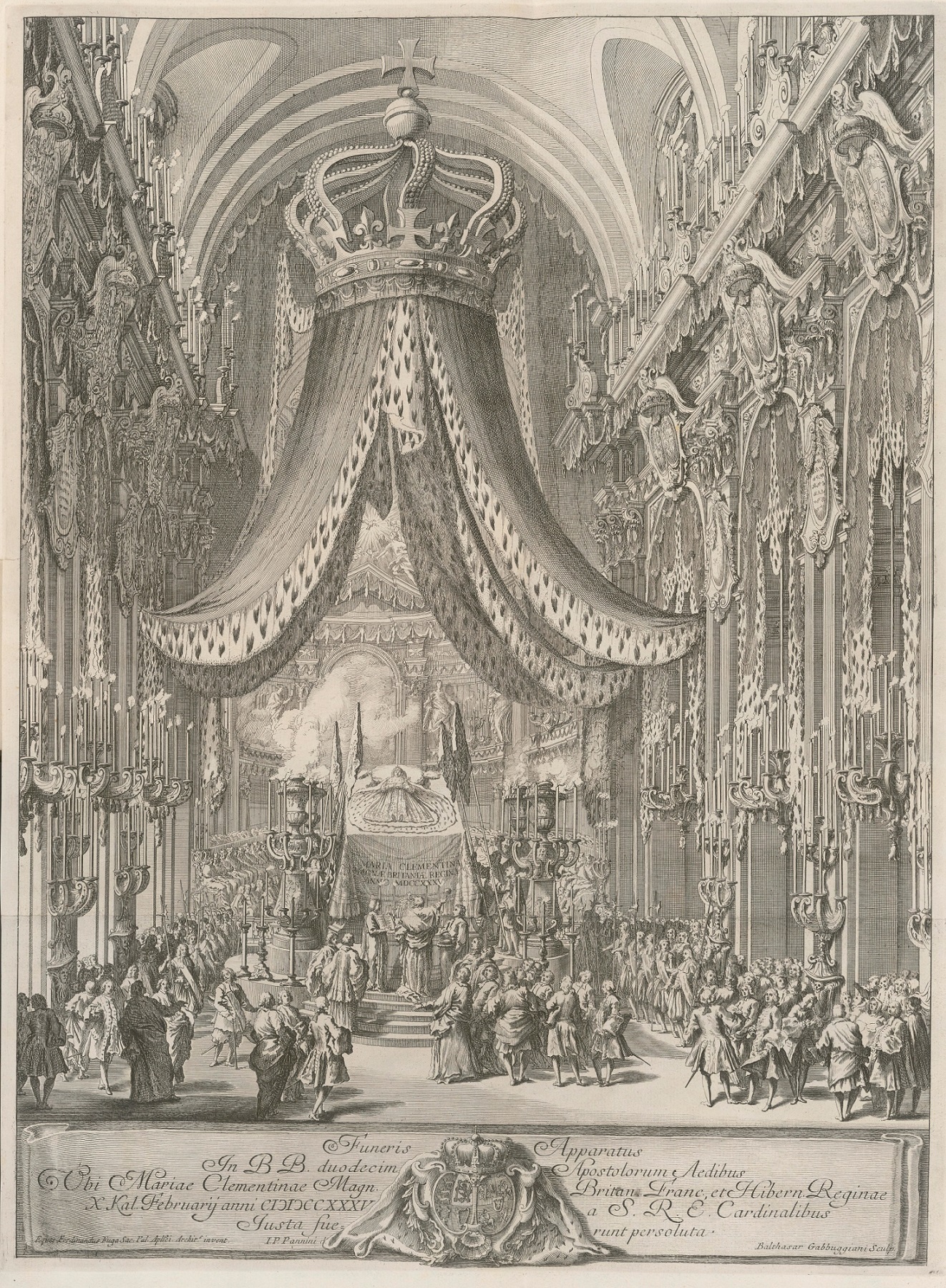 This depiction of the wife of the claimant to the thrones of England, Scotland, and Ireland appears on her monumental tomb of 1742, designed by Filippo Barigioni, in Saint Peter’s Basilica at the Vatican in Rome, the most important of all Catholic churches. The portrait on the tomb, held by a sculpted personification of Faith and a winged putto, was made as a mosaic by the Roman master Pietro Paolo Cristofari. The artist based the mosaic on the likeness of King Jan III’s granddaughter in this portrait by Lodovico Stern (1709–1777), a painter of Austrian origin, who moved to Rome around 1724.