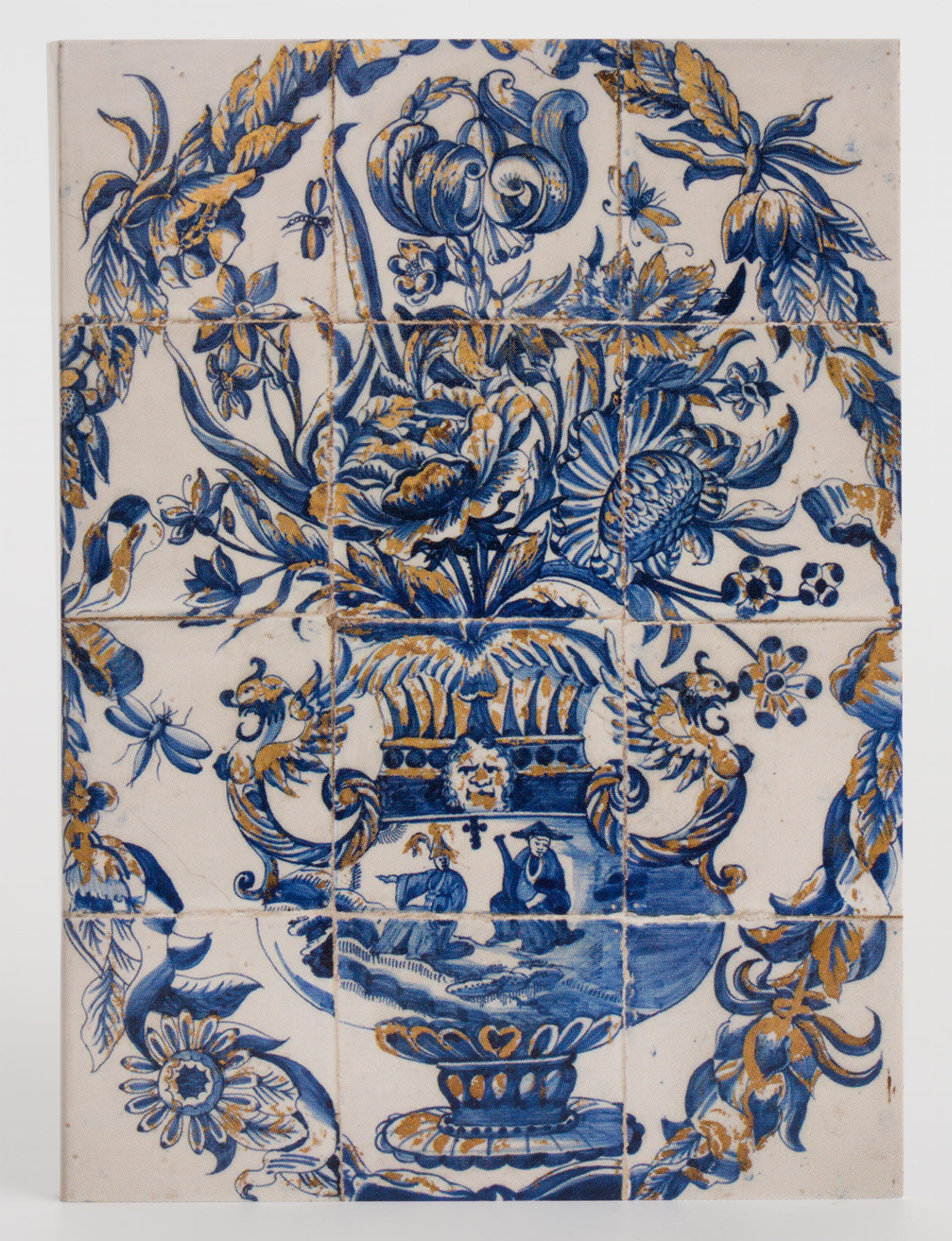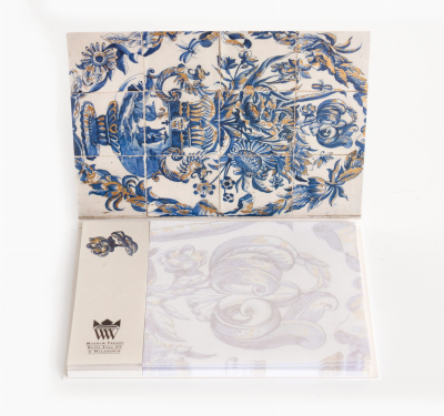 Post-it notes with floral motifs depicted on faience tiles in the Faience Cabinet.