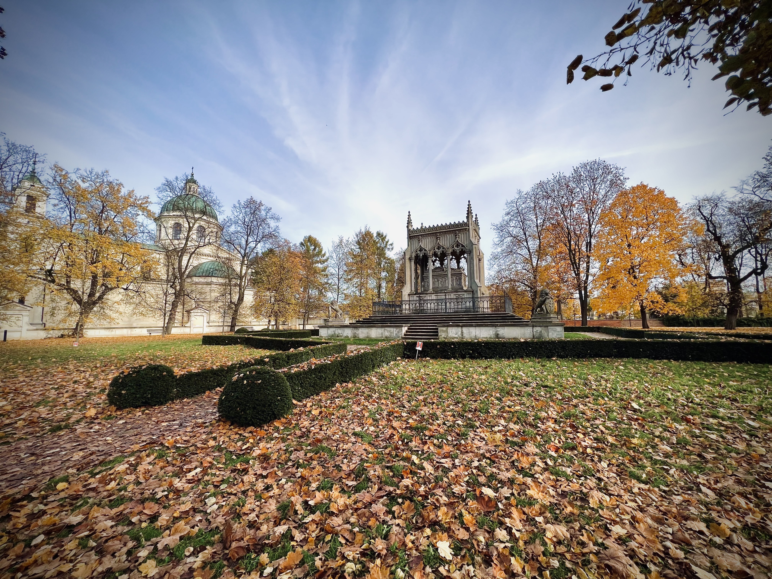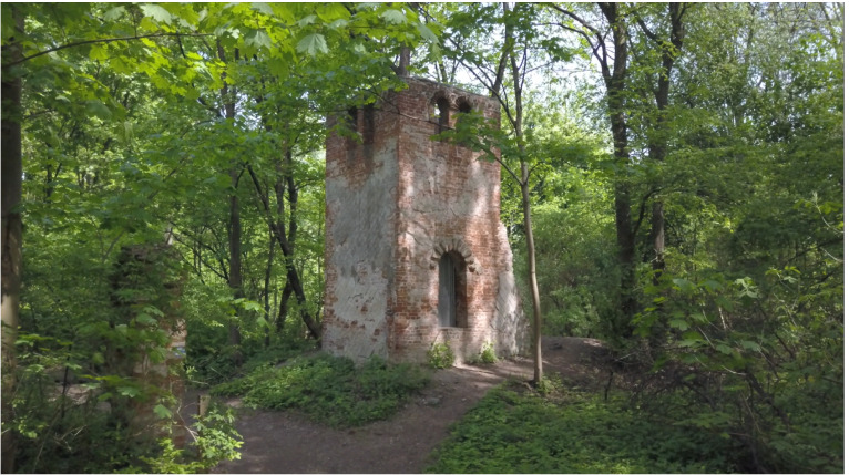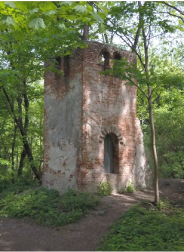 Among the thickets of trees one can find traces of ancient history – the ruins of a rotunda of the Palace from 1811 designed by Stanisław Kostka Potocki and Christian P. Aigner, the remains of the Caretaker's House, designed by Francesco Maria Lanci, and a well-preserved wooden forester's lodge.