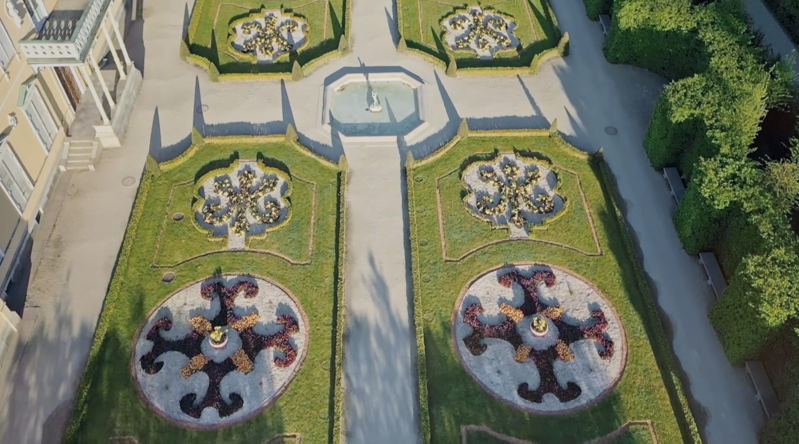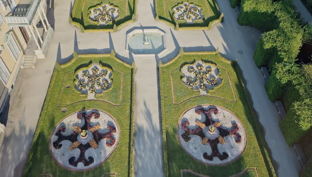 This Latin quote from Horace welcomes visitors into the Palace garden. It encourages one to forget about the daily worries of life and rest among nature. Ready to relax among the flowers?