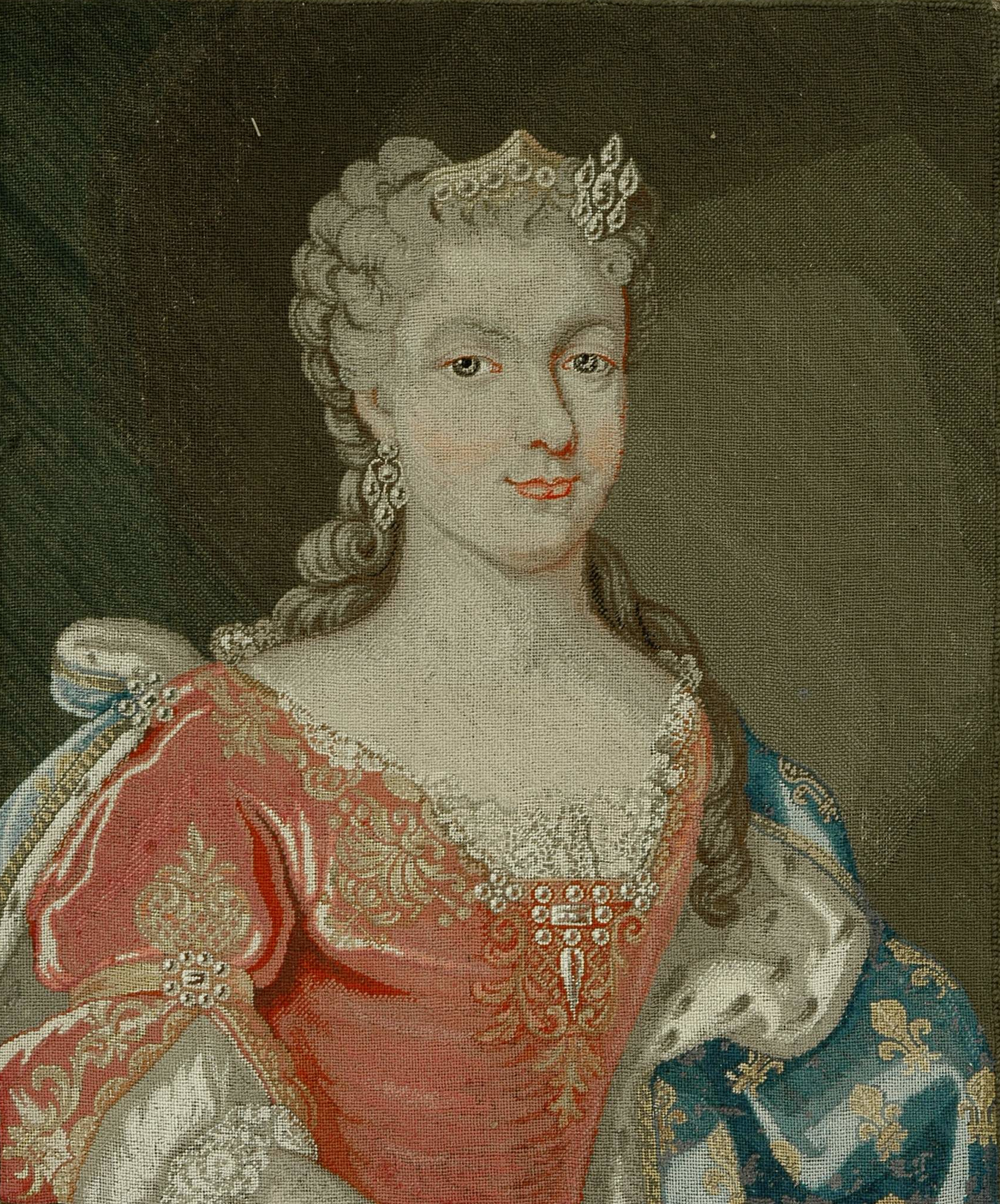Para haftowanych portretów przedstawiających polską królewnę Marię Leszczyńską oraz jej małżonka Ludwika XV, króla Francji, powstała w Paryżu po 1760 roku. Nieznany artysta musiał być naśladowcą francuskiego mistrza haftu, Pierre’a François Cozette’a, który słynął z podobnych dzieł. Portrety wykonane zostały na kanwie lnianej techniką haftu półkrzyżykowego o przeciętnej gęstości 63–65 ściegów na 1 centymetr kwadratowy. Pozwoliło to oddać nawet najdrobniejsze szczegóły strojów pary królewskiej. Portret mierzy 50 centymetrów w pionie i 43 centymetry w poziomie.