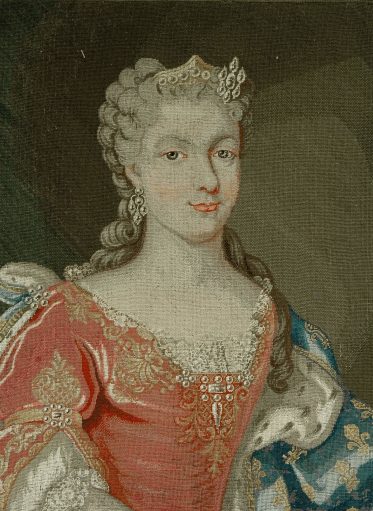 Para haftowanych portretów przedstawiających polską królewnę Marię Leszczyńską oraz jej małżonka Ludwika XV, króla Francji, powstała w Paryżu po 1760 roku. Nieznany artysta musiał być naśladowcą francuskiego mistrza haftu Pierre’a François Cozette’a, który słynął z podobnych dzieł. Portrety wykonane zostały na kanwie lnianej techniką haftu półkrzyżykowego o przeciętnej gęstości 63–65 ściegów na 1 centymetr kwadratowy. Pozwoliło to oddać nawet najdrobniejsze szczegóły strojów pary królewskiej. Portret mierzy 52 centymetry w pionie i 43 centymetry w poziomie.