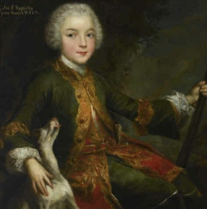 Napis w lewym górnym rogu płótna głosi: Józef Sapieha Cześnikowicz W. X. Lgo. Skrót oznacza Wielkiego Księcia Litewskiego. Inskrypcja nie precyzuje, o którego z Cześnikowiczów noszących to samo imię Józef chodzi, ale chłopiec przedstawiony na portrecie został zidentyfikowany jako siedmioletni syn cześnika litewskiego oraz wojewody mścisławskiego Ignacego Sapiehy i Anny z Krasickich.