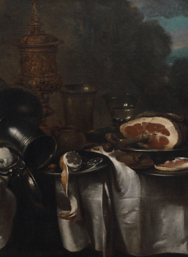 Obraz autorstwa Willema Claesza Hedy [Wilema Klasza Heidy], wykonany techniką olejną na płótnie, ma wymiary 96 centymetrów w pionie i 76 centymetrów w poziomie. Powstał około roku 1653.