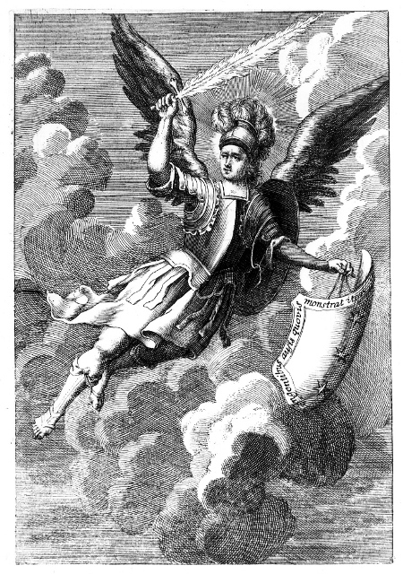 Druk ozdobiła dekoracyjna i, niestety, niesygnowana akwaforta, autorstwa zapewne któregoś ze śląskich grafików, wyobrażająca chwałę opiewanej rodziny Jana III. Unoszący się w przestworzach Archanioł Michał trzyma we wzniesionej ręce miecz ognisty – atrybut sprawiedliwości ale też i żarliwości oraz ognia wiary ; w drugiej zaś – usianą gwiazdami tarczę. Ma ona podwójne znaczenie: jako herb Sobieskich Janina oraz jako niebiańskie Scutum Sobiescianum, a więc największych rozmiarów tarcza o wypukłym kształcie, zapewniająca skuteczna ochronę. Tarcza taka symbolizuje opiekę Bożą, a zarazem wiarę, ponieważ – zgodnie ze słowami św. Jana Chryzostoma – „jak tarcza jest trzymana przed całym ciałem, będąc jakby murem, tak też i wiara: wszystko odpiera”. Zatem aluzje do osoby Jana III, zbawcy ówczesnej chrześcijańskiej Europy, są nader przejrzyste. Rycina nie jest wolna od błędów rysunkowych w perspektywicznym skrócie postaci Archanioła, mimo to nie można odmówić jej pewnego wdzięku.