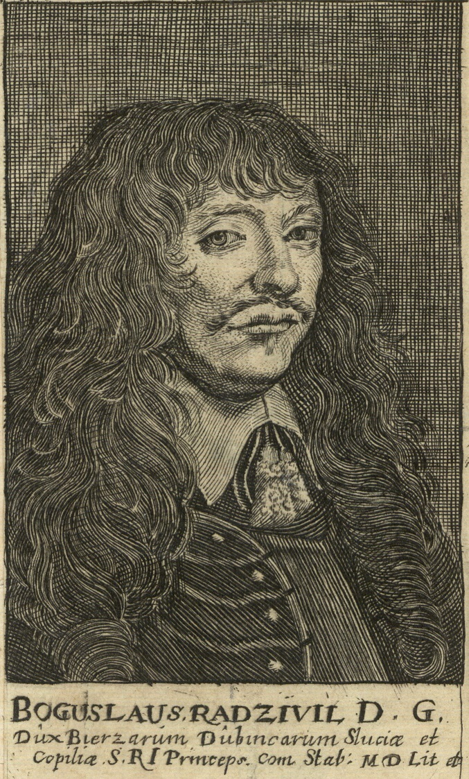 Na rycinie Konrada Götkego stanowiącej frontyspis panegiryku K.J. Wojsznarowicza Parentalis splendor… (Wilno 1647), obok heroizowanych antenatów ukazanych w zbrojach, duchownych oraz przedstawicieli mody stricte sarmackiej, w strojach zachodnioeuropejskich dostrzegamy jedynie trzech przedstawicieli rodu Radziwiłłów: Albrychta Stanisława, Aleksandra Ludwika oraz Bogusława.
