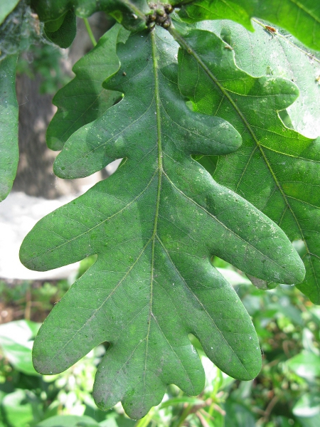 W dłoniach Potęgi, alegorycznej figury na elewacji pałacu wilanowskiego spoczywa gałąź dębowa – widać nie tylko charakterystyczny kształt liści (botanik nazwałby je zatokowo-wrębnymi, bo blaszka liściowa ma niezbyt głębokie wcięcia), ale także okryte czapeczkami żołędzie. Trudno jednak jednoznacznie stwierdzić, który to gatunek dębu. Jeśli mielibyśmy do czynienia z najczęstszym w Polsce dębem szypułkowym, wówczas owoce powinny być osadzone na długich szypułkach, a liście powinny mieć szeroką (sercowatą lub uszkowatą) podstawę blaszki i bardzo krótkie ogonki. Rzadszy u nas dąb bezszypułkowy miałby natomiast krótkie szypułki, dość długie ogonki liściowe i wąską nasadę blaszki. Na posągu widać, że blaszki liściowe są na dole wąskie, ale nie można ocenić długości ogonka i szypułki. A może to jakiś inny gatunek dębu, który w Polsce nie występuje? Tego nie wiem, jestem natomiast pewna, że intencją artysty było przedstawienie gałęzi dębowej jako symbolu siły ducha.