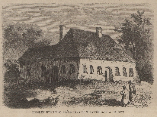 Ilustracja zamieszczona w „Tygodniku Ilustrowanym”, która przedstawia niski dom na tle pejzażu, przed którym spacerują ludzie. Jest to Dworek Jana III w Jaworowie.