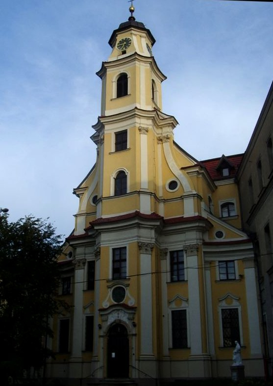 Można też jednak pójść w drugą stronę. W Wilnie, które obecnie jest oczywiście stolicą Litwy, ale w XVIII wieku było kresowym miastem Rzeczypospolitej, znajduje się kościół Augustianów (powstały w połowie XVIII wieku). Jego fasada niezwykle przypomina tę wrocławską, z tym, że znajdująca się na jej osi wieża ma jeszcze o jedną kondygnację więcej. O ile dzieło z Wrocławia jest bardziej stonowane i eleganckie to wileńskie zdecydowanie góruje dynamizmem i plastycznym traktowaniem twardej powierzchni ściany. Bez wątpliwości mamy przed sobą może nie bliźniacze, ale na pewno siostrzane fasady.