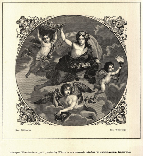 Grafika przedstawia portret duchownego ujęty w dekoracyjną owalną ramę, która została osadzona na postumencie. Obok postumentu siedzą dwie postaci. Po prawej stronie mężczyzna ubrany w antyczny strój z tarczą i mieczem w dłoni. Po lewej stronie młody, półnagi mężczyzna, również z tarczą. Powyżej dwa amory. Jest to portret Jana Stanisława Zbąskiego.