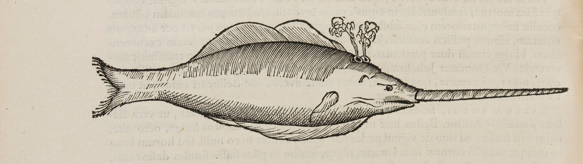 W drugiej połowie XVI w. uczeni doskonale zatem wiedzieli, że zarówno w Azji, jak i w Afryce żyją jednorogie bestie i w zasadzie panowała wśród nich zgoda, że są to nosorożce. Pozostawało zatem wyjaśnić, czym są jednorożce i czy w ogóle istnieją. Stopniowo zaczęto wykluczać kolejne znane z literatury gatunki jednorożców, aż pozostał jeden, którego istnienie wydawało się najbardziej prawdopodobne. Podobne do konia, wdzięczne stworzenie o białej sierści i długim na kilka metrów rogu istniało powszechnie w europejskich wyobrażeniach. Nikt go co prawda nie widział, ale wszyscy zajmujący się medycyną i historią naturalną uczeni i praktycy wiedzieli, jak wygląda alikorn, czyli róg jednorożca. Kły narwali (bo tym były faktycznie alikorny) zaliczały się do ciekawostek, które „wypadało mieć” w kolekcjach naturaliów: znajdowały się w praktycznie wszystkich monarszych zbiorach, od Eskurialu po Wawel. Starano się zatem dopasować zwierzę, które by taki róg miało. Od XV w. krążyły pogłoski o żyjących w północnych morzach zwierzętach z długim rogiem na głowie. Wydaną w 1539 r. mapę Skandynawii i mórz północnych autorstwa tytularnego biskupa Uppsali Olausa Magnusa (1490-1557) zdobi wiele – mniej lub bardziej fantastycznie przedstawionych – zwierząt morskich. Między nimi znajduje się także wynurzający się z wód w okolicach Islandii potwór z masywnym rogiem na łbie. Olausowi zawdzięczamy także jeden z pierwszych opisów monoceros piscis. Był to „morski potwór, mający na czole długi róg, którym może przebijać statki, niszczyć je i gładzić wielu ludzi” [O. Magnus, Historia de gentibus septentrionalis, Roma 1555, s. 744]. Towarzyszyło mu niewielkie przedstawienie, które jednak trudno było powiązać z jednorożcem.