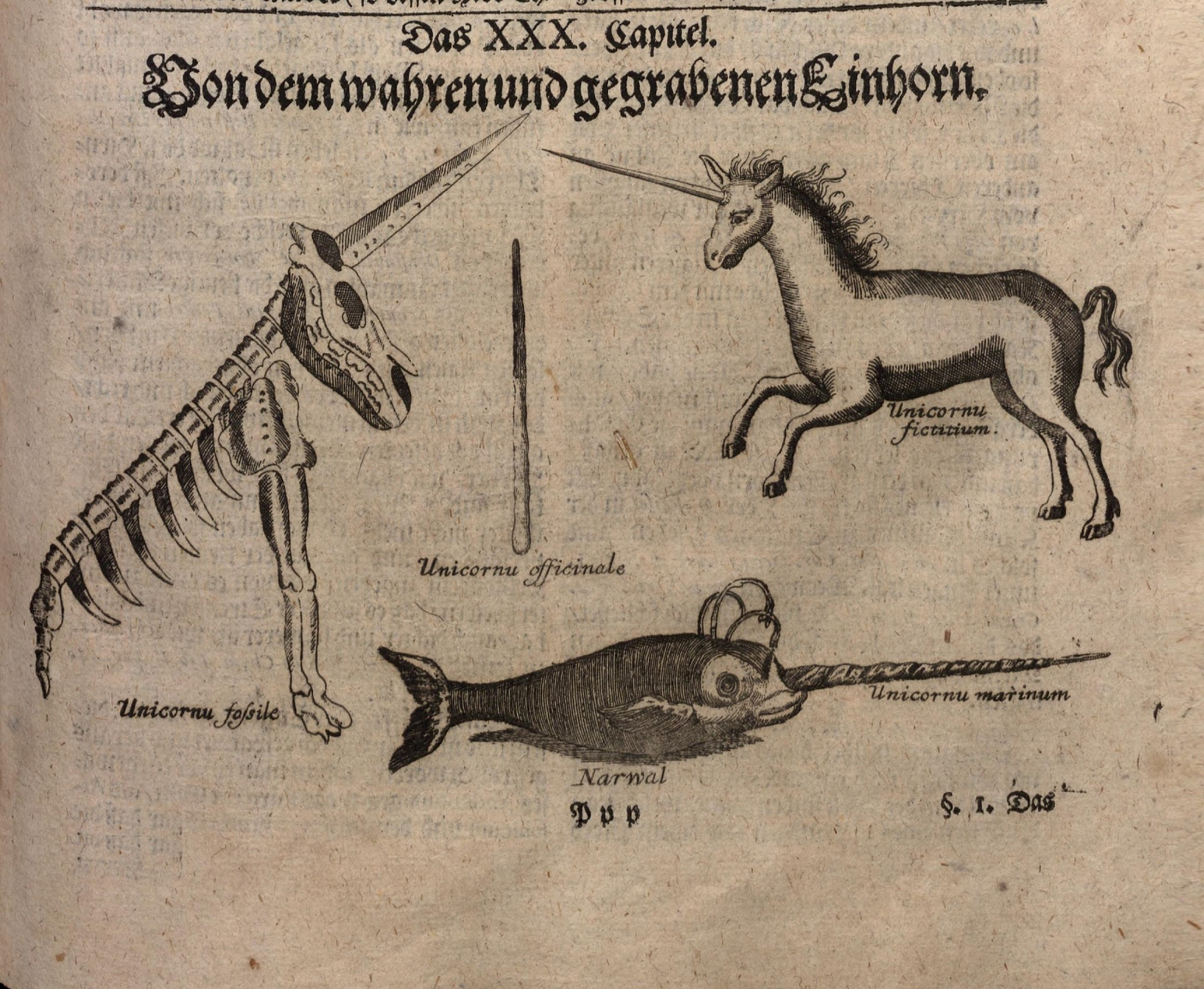 Mimo tak konkretnych dowodów, jakie zebrał Bartholin, przyrodnicy i lekarze długo nie mogli pogodzić się z tym, że jednorożce nie istnieją. Jeszcze w latach sześćdziesiątych XVII w. w saskim Osnabrück astronom Johannes Meyer zbudował ze znalezionych szczątków nosorożca włochatego, mamuta i rogu narwala szkielet dwunogiego jednorożca. Eksponat nie zachował się (choć kilkakrotnie próbowano go zrekonstruować) i znamy go tylko z rycin: Meyera zreprodukowanej w kompendium Michaela Bernharda Valentiniego (1657-1729) Museum Museorum [Frankfurt 1714] oraz miedziorytu Nicolasa Seeländera, który analizował Gottfried Wilhelm Leibniz (1646-1716) w Protogaea [Göttingen 1749]. Chociaż jeszcze w XVIII w. przytaczano świadectwa podróżników badających Afrykę, którzy mieli owe zwierzęta widzieć na własne oczy, powoli godzono się z faktem, że jednorożce nie istnieją. Był o tym przekonany Benedykt Chmielowski, który skonstatował wywód o legendarnych, acz zmyślonych zwierzętach tymi słowami: „jednakże, są zwierzęta ziemskie z jednym rogiem, jako to rhino cerotes, albo nosorożce, to jest róg nad nosem mające”[B. Chmielowski, Nowe Ateny, cz. 1, Lwów 1745, s. 120].