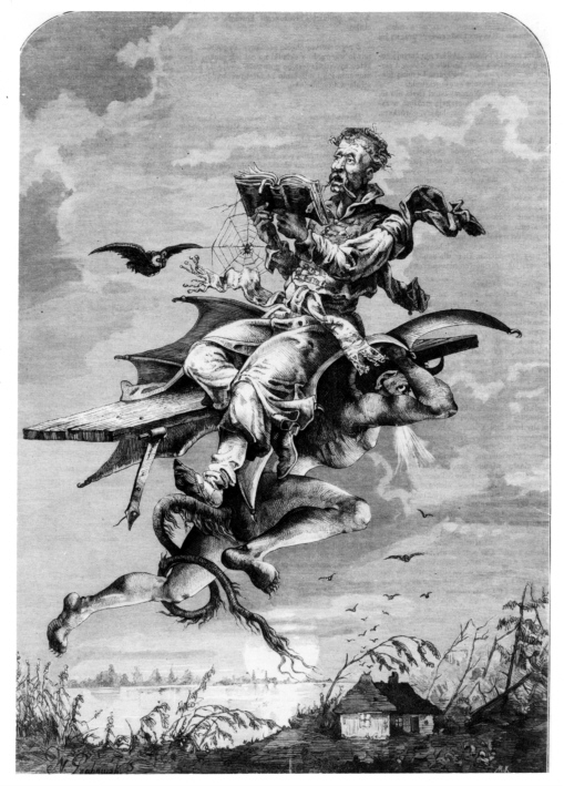 W „Tygodniku Ilustrowanym” 1876 r. (nr 21, s. 325) opublikowano drzeworyt Michała Kluczewskiego według rysunku Wojciecha Grabowskiego, przedstawiający ów sławny lot Twardowskiego, porwanego przez szatana. Uczony mag przybrał tu postać swojskiego, zagonowego „szaraczka” – tyczkowatego chudzielca o brzydkiej twarzy, który – siedząc na wyrwanych z zawiasów drzwiach – głośno śpiewa kantyczki ze sfatygowanego modlitewnika. Trudno zaprzeczyć, iż ten właśnie obraz Pana Twardowskiego jest nam zdecydowanie bliższy.