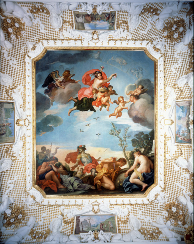 Apartamenty króla i królowej ozdobiono plafonami przedstawiającym cztery pory roku: króla - alegoriami Lata i Zimy, królowej – alegoriami Wiosny i Jesieni. „Była tam Wiosna w wieńcu świeżych kwiatów i nagie Lato z kłosów snopem, stała Jesień spryskana winnym moszczem i mroźna Zima z oszronionymi włosami” (Metamorfozy, ks. II, 26-30).