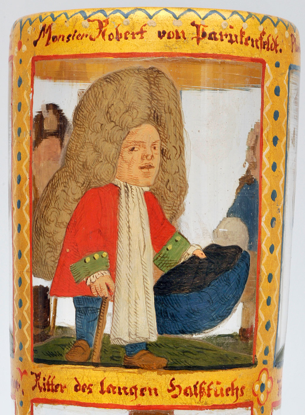 Rok 1709 był świadkiem największych peruk w historii męskiej mody. Już kilka lat później nastąpił redukcyjny zwrot. Mężczyźni „groźnego usposobienia” zaczęli związywać włosy z tyłu (peruki z tzw. queues). Po 1730 wykształciła się forma peruki „z harbajtlem, zawiązanym w miechu”. Jednym z powodów porzucenia sztucznych włosów były względy zdrowotne.