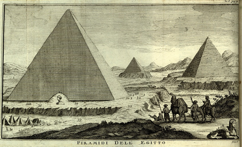 Zachwycił go również posąg Sfinksa zasypany aż po głowę piaskiem. W cieniu olbrzymiego posągu Potocki wraz z towarzyszami szukał schronienia przed żarem egipskiego słońca. Wprawdzie z powodu słabości wywołanej febrą nie zdobył się na wejście na wierzchołek piramidy Cheopsa, z której chciał zobaczyć rozległy widok na Nil i pustynię, lecz spędził około ośmiu godzin w jej wnętrzu, wykonując rysunki skarbów zgromadzonych w grobowcu faraona. Ponowną wizytę u podnóża piramid udaremniły – jak można wnioskować z zanotowanych objawów – poparzenia i udar słoneczny. Po powtórnym pobycie w Aleksandrii Potocki opuścił to miasto 13 października i powrócił statkiem do Wenecji, zatrzymując się po drodze na Krecie (Iraklion) oraz na półwyspie Istria.
