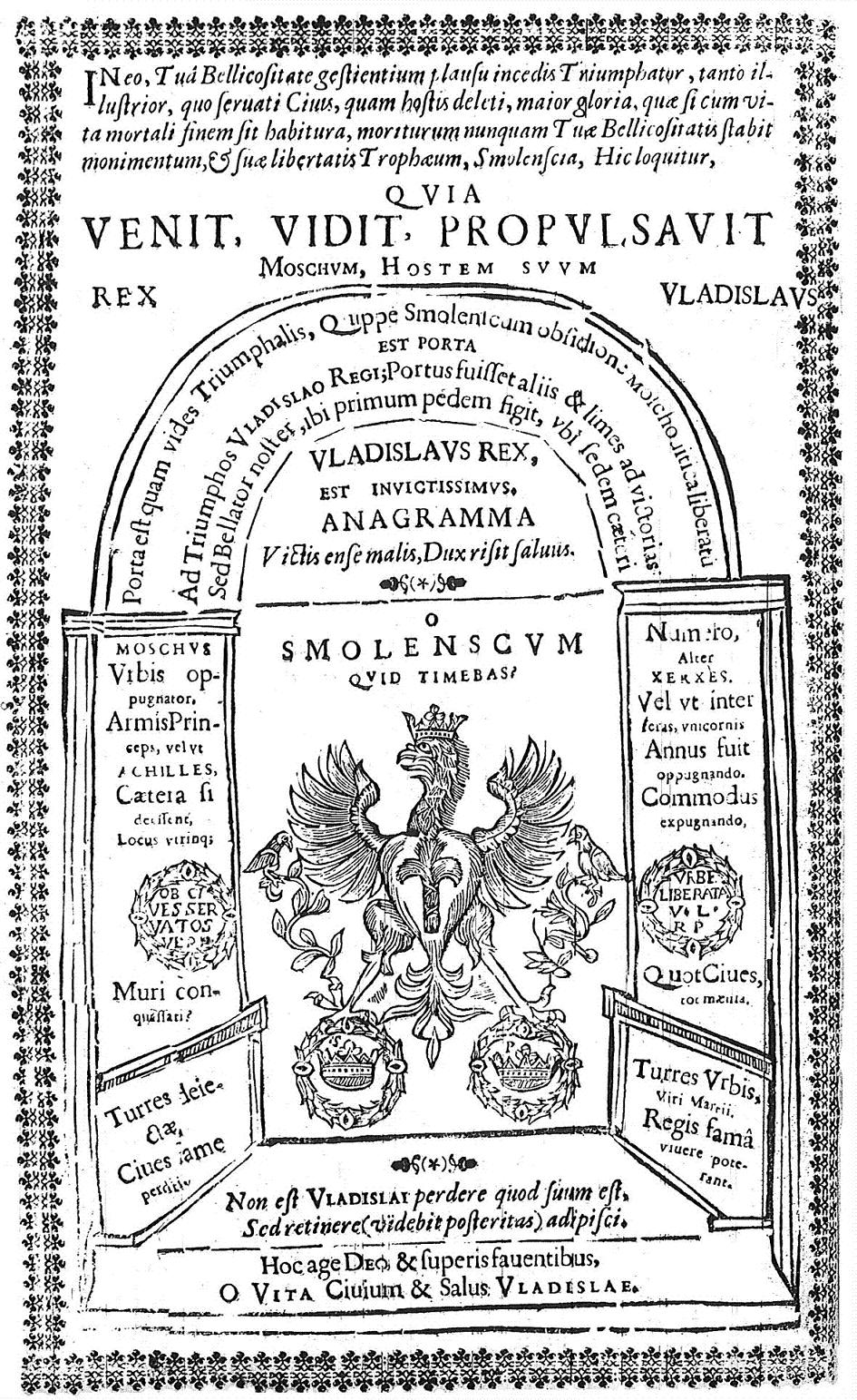 Na okazję koronacji Władysława IV jezuita Paweł Kuhn przywitał „naszego Apollina” pięknie wydanym drukiem okolicznościowym z elementami tzw. poezji wizualnej, pt. Trophaeum regale potentissimo Poloniarum et Svecorum regi Vladislao IV Cracoviam... regalis inaugurationis…(Kraków 1633), wpisując wiersze panegiryku w kształty odwołujące się bezpośrednio do treści utworu: wieniec, obelisk oraz latarnię morską. Rok później w lubelskiej drukarni Pawła Conradiego światło dzienne ujrzała publikacja przypisywana dawniej Pawłowi Żuchowiczowi pt. Via Triumphalis Polonorum et Suecorum Regem, Bellicosissimum, Moschorum Domatorem Fortissimum… Vladislaum IV…, opisująca uroczystość zorganizowaną w tutejszym kolegium jezuickim, z okazji zwycięstwa króla pod Smoleńskiem. Alegorię triumfu wyrażono tutaj poprzez symboliczne drzeworyty połączone z łacińskimi inskrypcjami, graficzną wizualizację koncepcji łuków triumfalnych honorujących zwycięzcę. Wiersz wizualny to utwór wierszowany „zbudowany w taki sposób, iż słowa – niekiedy przy pomocy czysto graficznych środków – układają się w figurę, która w relacji do wypowiedzi werbalnej nabiera funkcji zarówno mimetycznych jak i symbolicznych” (P. Rypson za U. Ernstem).