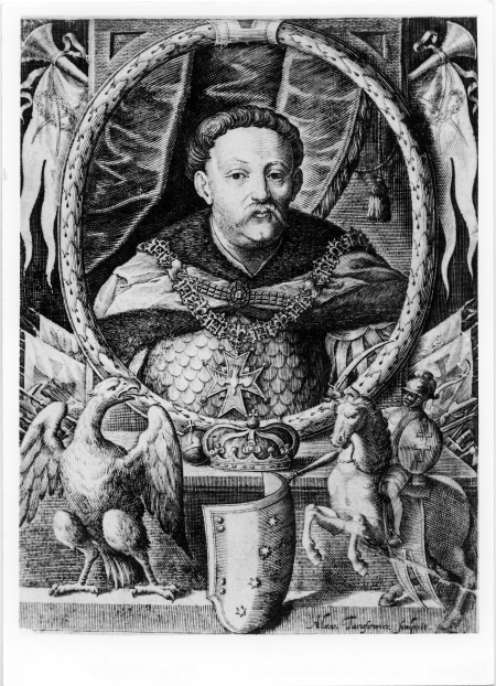 Wśród stosunkowo licznych portretów króla Jana III Sobieskiego w karacenie wyróżnia się wyjątkowo piękny obraz olejny ze zbiorów Radziwiłłów w Nieborowie, wykonany przez nieokreślonego malarza, pozostającego na usługach monarchy, zapewne niedługo po 30 listopada 1676 r. (wówczas Sobieski otrzymał francuski Order Św. Ducha, w którym występuje na płótnie). Malowany niewątpliwie z natury, odznacza się dobrą charakterystyką twarzy i wielką dokładnością w odtwarzaniu szczegółów; uchodzi za jedno z najlepszych dzieł portretowych gloryfikujących króla – wojownika (rex armatus). Zgodnie ze statutami Orderu Św. Ducha, każdy z kawalerów był zobowiązany przekazać swój wizerunek do galerii kapituły w opactwie Grands Augustins w Paryżu. Czy monarcha spełnił ów warunek, nie wiadomo. Za portret taki ofiarowany kapitule uchodził przedstawiający Jana III obraz, który w XIX w. figurował w zbiorach rapperswilskich; z czasem przejęty przez Muzeum Narodowe w Warszawie, zaginął po II wojnie światowej. Tego rodzaju malarskich wizerunków Sobieskiego powstało zresztą więcej.