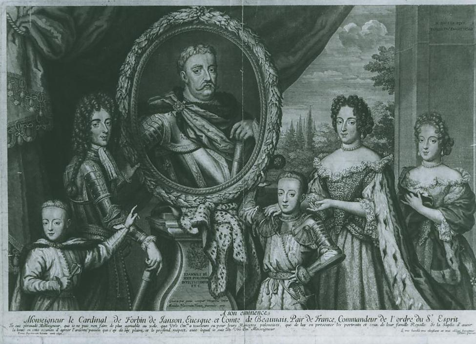 W Państwowych Zbiorach Sztuki na Wawelu w Krakowie znajduje się – pochodzący z kolekcji Broel – Platerów w Wilnie – obraz olejny, przedstawiający zbiorowy portret rodziny Sobieskich, wykonany najprawdopodobniej w Rzymie przez Henri Gascara (Gascarda, 1634 lub 1635 – 1701), malarza i mezzotintistę paryskiego, osiadłego nad Tybrem od 1659 r. Ten reprezentacyjny obraz, namalowany w 1691 r., raczej nie powstał w Polsce. Przypuszcza się, iż artysta posłużył się wizerunkami członków rodziny Sobieskich, znajdującymi się być może w posiadaniu kardynała Forbin de Janson, ambasadora francuskiego w Warszawie, zaprzyjaźnionego z dworem. Nie jest więc chyba rzeczą przypadku, że wierna i stojąca na wysokim poziomie artystycznym graficzna kopia tego obrazu, sporządzona w 1693 r. w Rzymie przez Benoîta Farjata (1646 – 1720), działającego tam rytownika francuskiego, została przez Gascara zadedykowana właśnie Forbinowi.