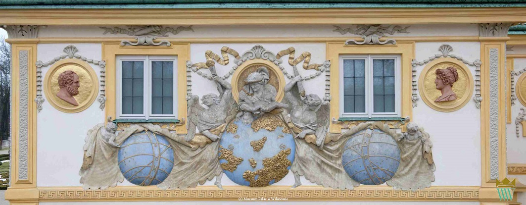 Pomysłodawcę wilanowskiego medalionu nie zainspirowała jednak rycina, dołączona do Horacjańskich emblematów, lecz propozycja w komentarzu Marina le Roy, sieur de Gomberville (Par tout le Soucy nous accompagne w: La doctrine des moeurs, 1646; 2 wyd. pt. Le Théâtre moral de la vie humaine, 1678): „Monte sur l`Ocean; Cours les deux Hemispheres;/ Demeure en l`autre monde” (Wznieś się ponad ocean, przebiegnij dwie hemisfery, zamieszkaj w innym świecie). Przedstawione na ścianie alkierza między hemisferami oceaniczne wyspy szczęśliwe są zapewne owym zapewniającym stałe schronienie „innym światem”. We wskazanych przez Vaeniusa i jego komentatora odach (Od. II.16, III.1) Horacy informował, iż osiągnięcie ziemskiego otium jest możliwe, mimo krótkiego i zmiennego życia, dzięki poprzestawaniu na małym, zapewniającym łagodny sen. Nie przerwie go wojenny strach ani Kupidyn. Dodajmy, że sen nazwany był przez Senekę synem Astrei (V. Cartari). Myśl neostoicka proponowała wyzwolenie z uciążliwości życia na krótko przez sen, na zawsze przez śmierć. Podczas sennego vacatio animae (wyzwolenie duszy) dusza mogła swobodnie przebiegać przez hemisfery.