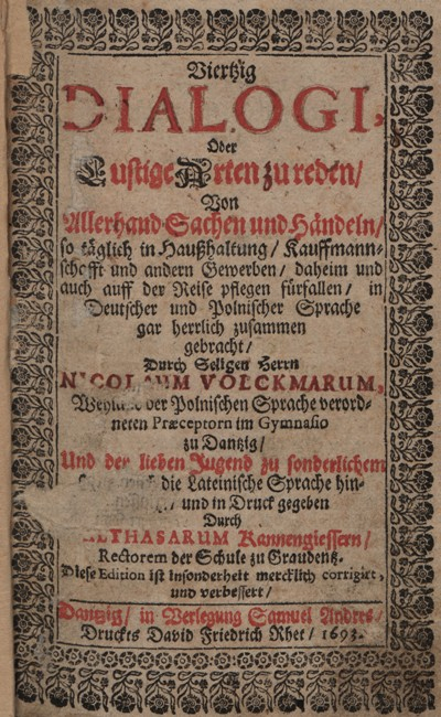 Rozmówki stanowiły jeden z gatunków dawnej literatury dydaktycznej. Nicolaus Volckmar, autor podręcznika do nauki języka polskiego wydanego w Gdańsku na początku XVII w., używał formy dialogu, aby w przystępny sposób w języku łacińskim, niemieckim i polskim przedstawić czytelnikom słownictwo dotyczące codziennych spraw. Scenki rodzajowe zawarte w podręczniku dotyczyły typowych sytuacji w domu, szkole, w kościele i na targu. Ich uczestnicy rozmawiali o pogodzie, o drogich produktach sprzedawanych przez kramarzy, o ciekawych lub nudnych kazaniach wysłuchanych na mszy czy mniej codziennych sytuacjach, np. o bijatyce, która miała miejsce na weselu znajomego.