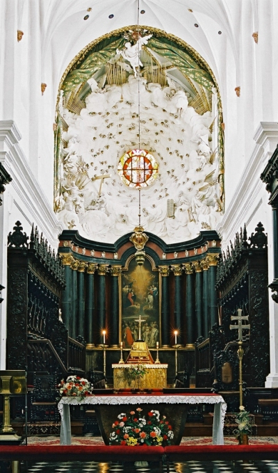 Bujne i realistycznie oddane formy ornamentyki kaplicy należą do obiegowego zestawu najmodniejszych w tym okresie w Holandii form zdobień architektonicznych, pochodzą wprost od niemal identycznych detali w reprezentacyjnych wnętrzach ratusza w Amsterdamie (1650–1653, proj. Jacob van Campen, wyk. Artus Quellinus I z warsztatem), spopularyzowanych w całej Europie w 1665 r. dzięki serii rycin Hubertusa Quellinusa wydanych w oficynie Fredericka de Witt w zbiorze pt. Voornaamste Statuen ende Ciraten van het konstrijk Stadthuys van Amsterdam… (tytuł łac.: Prima pars Praecipuarum effigierum ac ornamentum amplissimae curiae Amstelodamensis…). Detale rzeźbiarskie Kaplicy Królewskiej nie noszą jednak charakterystycznych znamion klasycyzującego stylu Schlütera. Są zbyt mięsiste i naturalistycznie oddane, ponadto występują w nich pędy podsuszonego akantu – ornament o południowoniemieckiej genezie stosowany przez artystę w pozostałych pracach bardzo rzadko i oszczędnie. Również ocalone podczas II wojny światowej znakomite głowy aniołów flankujące portal główny, o ostro ciętych rysach twarzy, drobiazgowo opracowanych oczach i burzy włosów w ogóle nie mają cech zbieżnych z rozpoznanymi dotąd pracami figuralnymi Schlütera. Przyjmowanym dotąd za pewnik argumentem za atrybucją zespołu dekoracji gdańskiej kaplicy Schlüterowi był wyrwany z szerszego kontekstu fragment opublikowanego w 1933 r. przez Starzyńskiego pisanego z Wilanowa listu Agostina Locciego II do króla z dnia 31 X 1681 r. Architekt pochwalił w nim niewymienionego z imienia i nazwiska rzeźbiarza – autora bozzetta lub modella z „Fiamingowymi dziećmi”. Miał on pracować dla władcy już wcześniej w Jaworowie. Ostatecznie artystę tego z młodym gdańszczaninem utożsamił Mańkowski, prawdopodobnie na podstawie luźnych spostrzeżeń Gurlitta dotyczących rzekomego udziału Schlütera w stiukatorskich dekoracji wnętrz wilanowskich. Uwagi te rozszerzył jeszcze i ugruntował w literaturze Kondziela. Tezie o zatrudnieniu Schlütera w Wilanowie i Warszawie już w 1681 r., a więc tuż po wykonaniu prac w Gdańsku, przeczy nie tylko podana informacja o wcześniejszym pobycie wspomnianego statuariusa w prywatnych dobrach króla na Rusi, ale chociażby sam fakt wykonania przez Schlütera w swoim rodzinnym mieście, i to z dostępnych właśnie tam materiałów – tegoż samego co w Kaplicy Królewskiej piaskowca gotlandzkiego Burgsvik oraz wapienia mozańskiego Noir Belge / Noir de Namur – obu atrybuowanych mu przekonująco pomników nagrobnych kan. Joachima Hirtenberga (Pastoriusa) (zm. 1681) i Adama Zygmunta Konarskiego (zm. 1685) w katedrze we Fromborku (ok. 1682 i 1685–1687) oraz datowanego na lata 1688–1693 kamienno-alabastrowo-stiukowego ołtarza głównego, a także kartusza i puttów w portalu wejściowym kościoła cystersów w Oliwie.