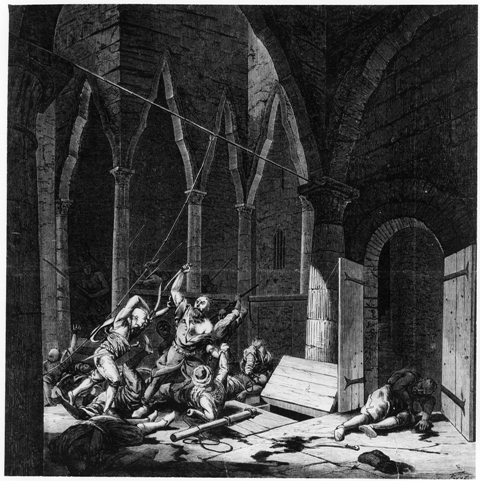 Ten dramatyczny moment zabójstwa uwiecznia sugestywna kompozycja, rysowana przez Erazma Rudolfa Fabijańskiego (1826 – 1892) wspólnie z Juliuszem Kossakiem (1824 – 1899) i cięta mistrzowsko na drewnianym klocku przez Jana Styfiego (1839 – 1921). Rycinę zamieszczono w „Tygodniku Ilustrowanym” (1862). Ma ona po części charakter dokumentarny ze względu na zamieszczone u dołu objaśnienie w formie nadruku: Miejscowość rysował z natury Fabijański, figury skomponował Kossak. Rzeczywistość zapewne nie odbiegała wiele od przedstawionej sceny, może nawet była od niej jeszcze straszniejsza.