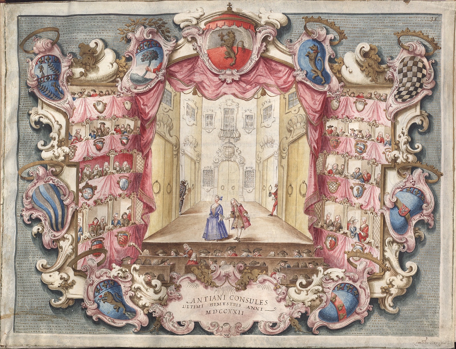 Jakub i Klementyna cieszyli się szczególnymi względami w Teatro d’Alibert, byli bowiem właścicielami aż trzech lóż. Reprezentowały one trzy królestwa, którymi miał rządzić Jakub Stuart – Anglii, Szkocji i Irlandii. Jak z tego wynika, przestrzeń teatralna odzwierciedlała też przestrzeń polityczną ówczesnej Europy.