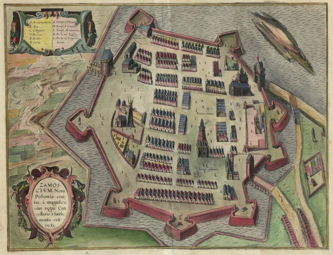 Każde z idealnych miast zostało założone na planie centralnym. Forma Zamościa zbliżona była do wydłużonego pięcioboku przypominającego gwiazdę; Palmanovy – do dziesięcioboku o układzie koncentryczno-radialnym; Ferrary – do wzorcowego, rzymskiego castrum romanum, renesansowej Avoli zaś – do sześcioboku z centralnym placem. Tak popularne w renesansie układy centralne stanowiły doskonałą logiczną koncepcję. Kojarzyły się ponadto z symbolicznym typem kompozycji, która bazowała na okręgu. Koło natomiast uchodziło za kształt doskonały, symbol wieczności Boga i obraz świata, czyli tzw. imago mundi. W idealny plan z kolei miała być wkomponowana pragmatycznie wytyczona zabudowa. Tym samym dwie powierzchnie: płaska – plan oraz trójwymiarowa – bryły, miały stanowić dwa uzupełniające się komponenty. Kiedy zatem Jan Zamoyski zwrócił się do Bernarda Morando o „malowanie rozmieszczenia placu na miasteczko” – zależało mu na pełnej koncepcji miasta zakładającej zarówno jego zabudowę, jak i fortyfikacje, a także funkcje handlowe oraz polityczne. Dobrym przykładem ilustrującym zestawienie sylwety miasta z planem jest szwedzki plan Zamościa z 1704 r. znajdujący się w Muzeum Zamojskim. Na planie tym dokładnie odwzorowano obrys fortyfikacji, fosę, zalew, kwartały zabudowy wraz z kluczowymi budowlami oraz widok panoramiczny od strony północnej.