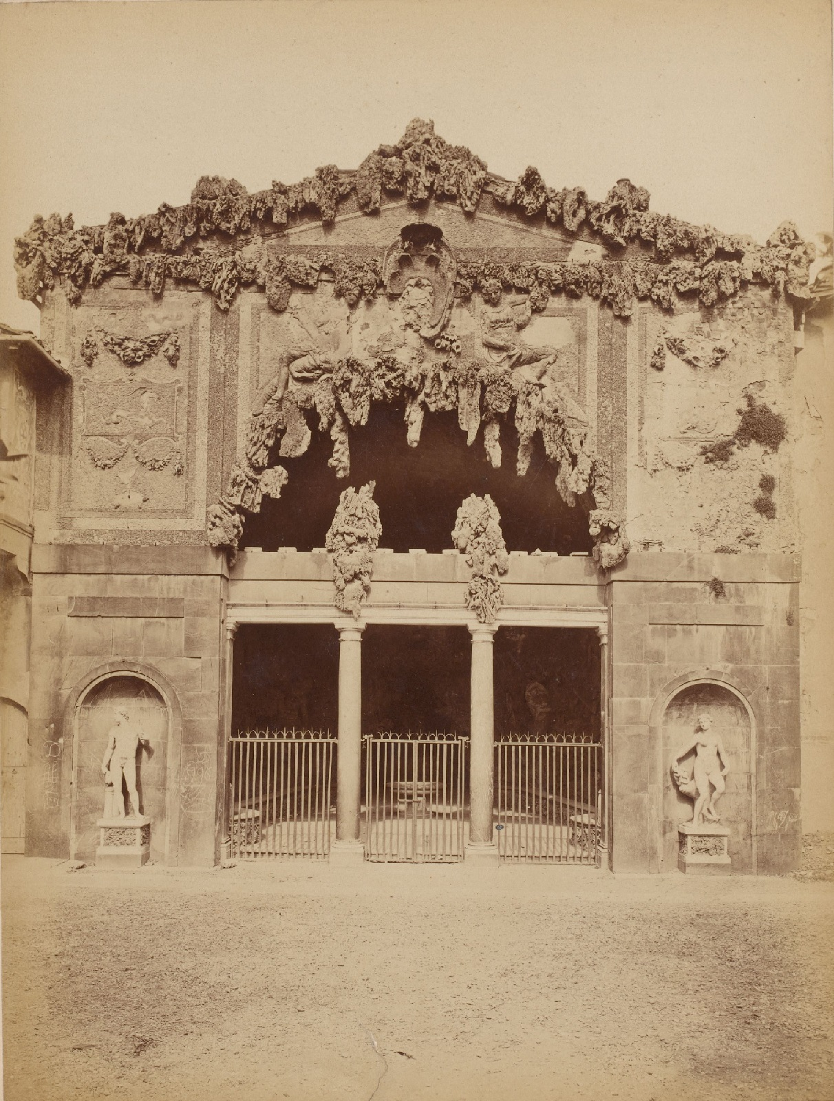 Za najznakomitszy przykład należy uznać grotę w ogrodach należącego do Medyceuszy Palazzo Pitti we Florencji. Grotta Grande to okazały obiekt, wybudowany według projektu Bernarda Buontalentiego, który znany był także z opracowywania dekoracji scenicznych. Jej wnętrze przywodzi na myśl świat fantastycznej natury: bóstwa antyczne przedstawione zostały na tle arkadyjskiego krajobrazu, a ze skał wyrastają zwierzęta i postaci ludzkie. Sklepienie Grotta Grande zamknięte zostało zbiornikiem wypełnionym wodą, w którym pływają ryby, co pozwoliło uzyskać w jej wnętrzu niezwykłe efekty świetlne.