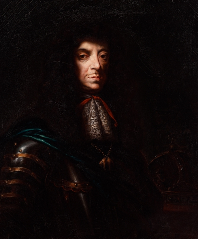 Obraz olejny. Przedstawia mężczyznę na koniu, w otoczeniu żołnierzy. Mężczyzna w zbroi i czerwonym płaszczu. W ręce trzyma buławę. Nad nim biały orzeł z rozpostartymi skrzydłami trzymający w dziobie wieniec laurowy. Jest to portret Jerzego Sebastiana Lubomirskiego.