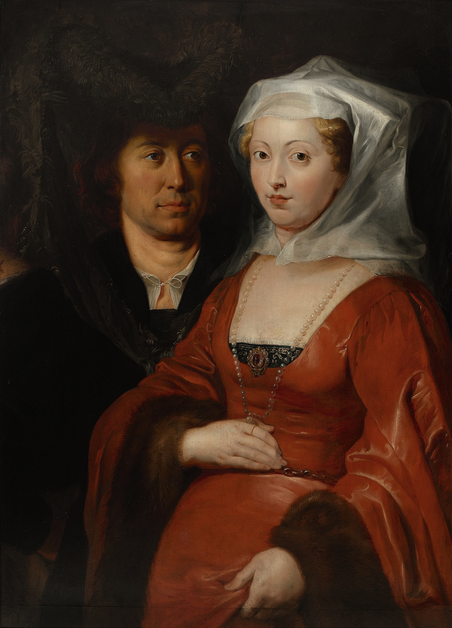 Wnikliwe studium portretowe dwojga ludzi w wyszukanych średniowiecznych strojach zachowuje dla przyszłych wieków wyobrażone wizerunki postaci historycznych żyjących w VII stuleciu – św. Begi z Andenne i stojącego za nią mężczyzny. Obraz wilanowski pozostaje w dużej zależności od płótna Rubensa z Kunsthistorisches Museum w Wiedniu datowanego na ok. 1612–1615 określanego aktualnie jako Podwójny portret Ansegisusa i św. Begi z Brabantu (badacze nie są zgodni, która z identyfikacji towarzysza Begi jest właściwa). Tworząc urzekający prostotą i szczerością wyrazu podwójny portret kobiety i mężczyzny, Rubens opierał się na dwóch osobnych dziełach Huberta van Eycka. Możemy o tym wnioskować z inskrypcji pod pochodzącą z połowy XVII w., wykonaną na podstawie oryginału ryciną autorstwa Fransa van der Steena. Zastanawia sposób ujęcia relacji łączącej portretowanych – o ile upozowanie kobiety jest autonomiczne, naturalne, o tyle poza mężczyzny sprawia wrażenie dość teatralnej, wymuszonej, co jedynie potwierdza, że dzieło jest swego rodzaju kolażem.