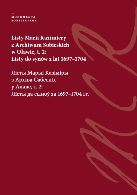 W drugim tomie serii Monumenta Sobiesciana publikujemy korespondencję królowej do synów z kolejnych jednostek Archiwum Sobieskich w Oławie (NGAB, f. 695, op. 1, nr 271, 272, 277, 278, 286).