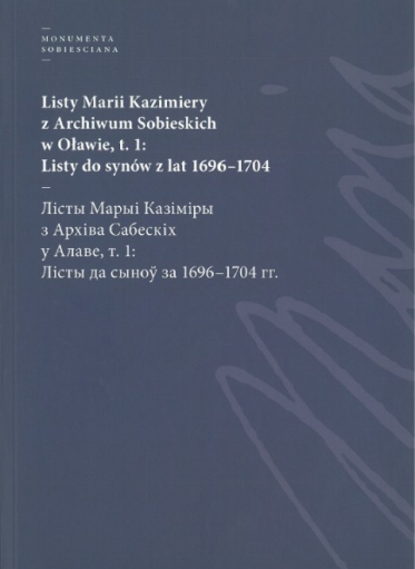 Listy Marii Kazimiery z Archiwum Sobieskich w Oławie, t. 1: Listy do synów z lat 1696-1704, opracowanie i redakcja naukowa: Anna Leyk i Jan Jerzy Sowa, „Monumenta Sobiesciana”, Warszawa 2019, ISBN 978-83-66104-24-2