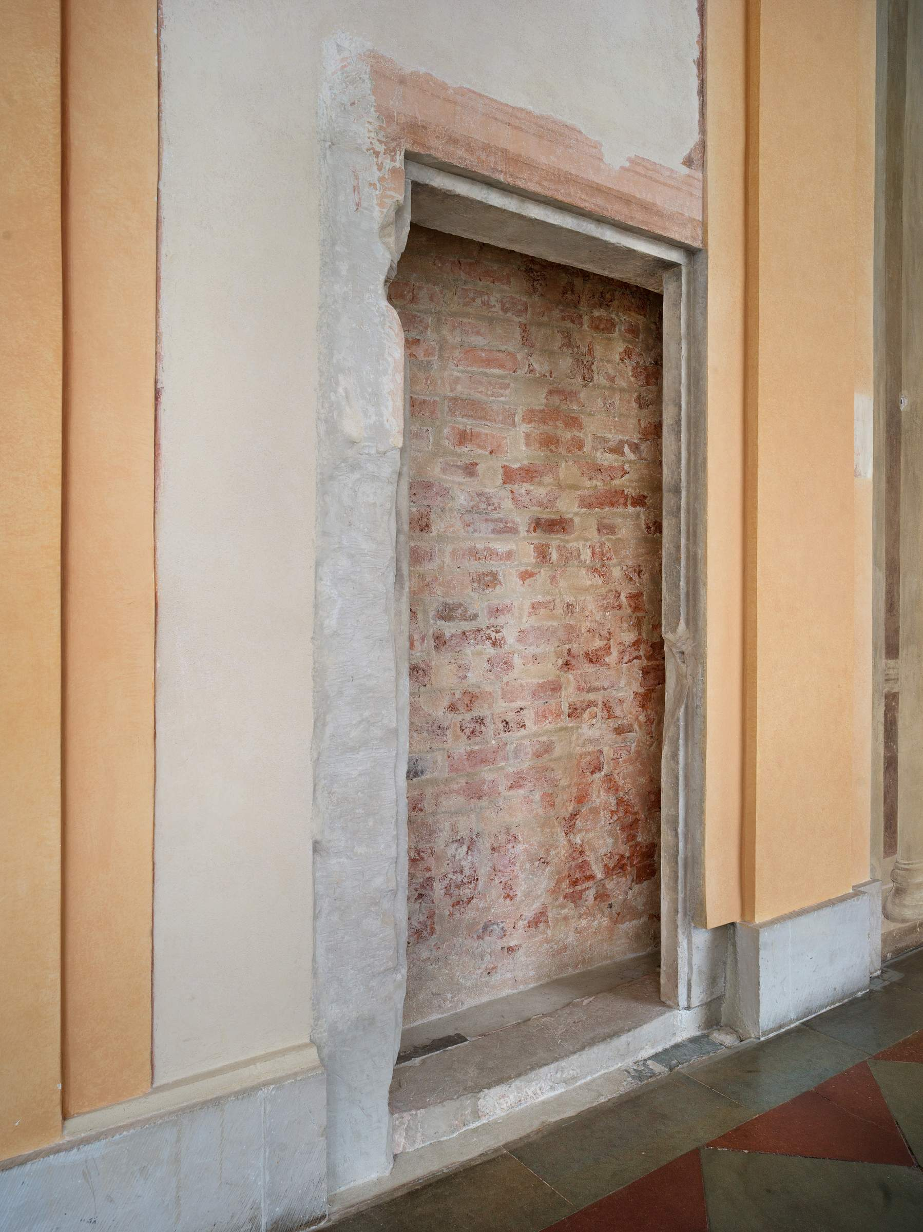 Istnienie zamurowanego wejścia do wieży stanowi świadectwo licznych przebudów i przemian wystroju, jakim podlegał pałac w ciągu wieków.
