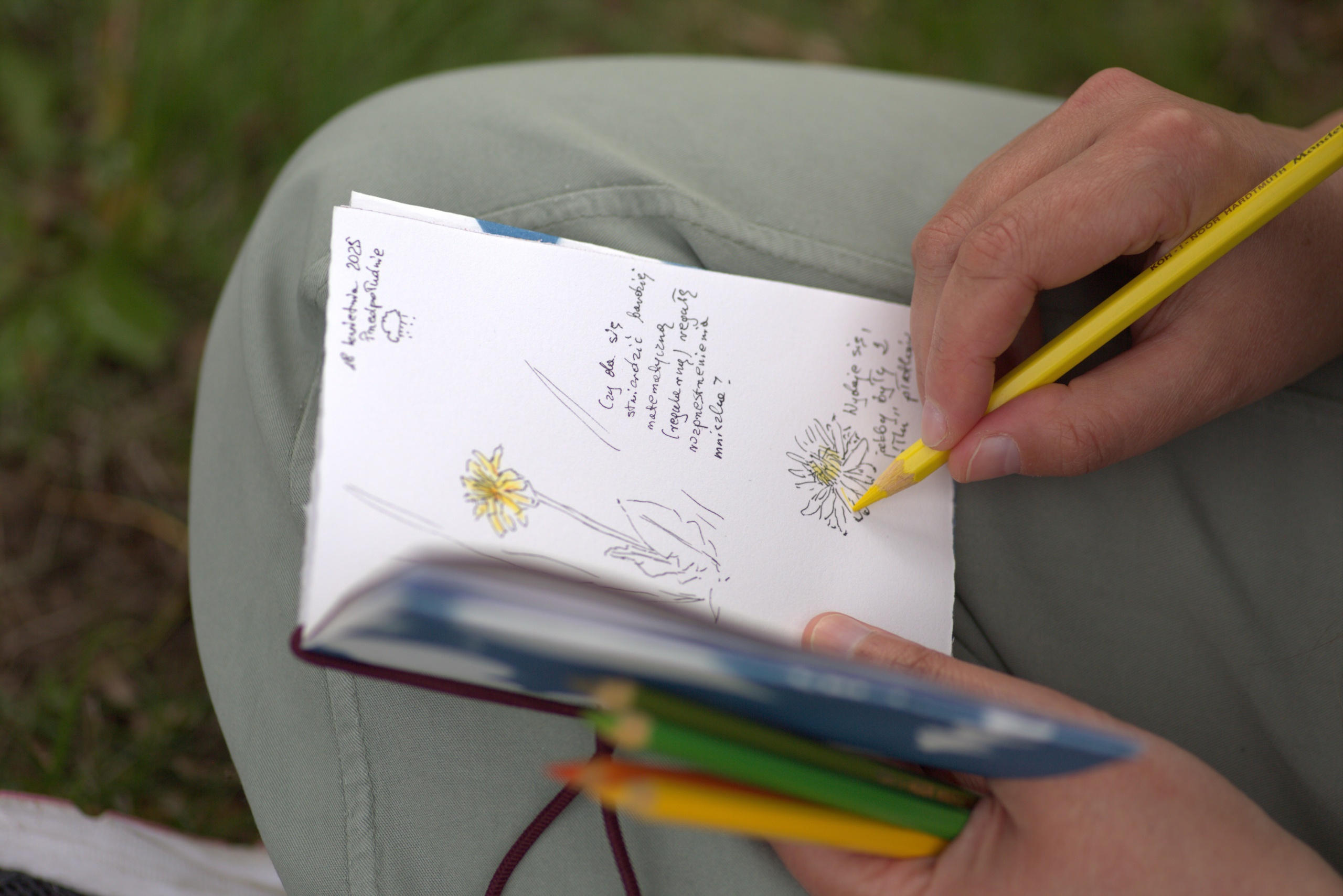 Szkicowanie z natury rozwija zdolność patrzenia i łączy nas z otoczeniem, osadza w czasie i przestrzeni. W nieustannie zmieniającym się świecie co dzień jest coś inspirującego do odkrycia! Warto też przypomnieć sobie, jak to jest być TU i TERAZ, uwolnić się od pośpiechu, docenić piękno i spokój bijące z otaczającej nas przyrody.