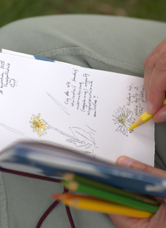 Podczas spotkania prowadzonego przez artystkę i przyrodniczkę poznamy terenowe narzędzia i techniki rysunkowe, a następnie wykorzystamy je w ogrodach do obserwacji świata natury i tworzenia artystycznego dziennika z notatkami przyrodniczymi.