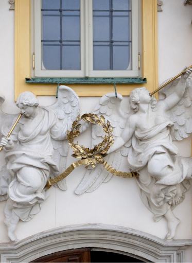 Obok Geniusza Chwały lecą też dwa putta – jedno po lewej stronie, drugie u dołu. To figury wykonane ze złoconego brązu. Putto po lewej trzyma w ręce zapaloną pochodnię, putto po prawej – gałązkę wawrzynu. Wawrzyn symbolizuje zwycięstwo, bohaterskie czyny, triumf i sławę, pochodnia zaś przywołuje słońce oraz jest emblematem prawdy.