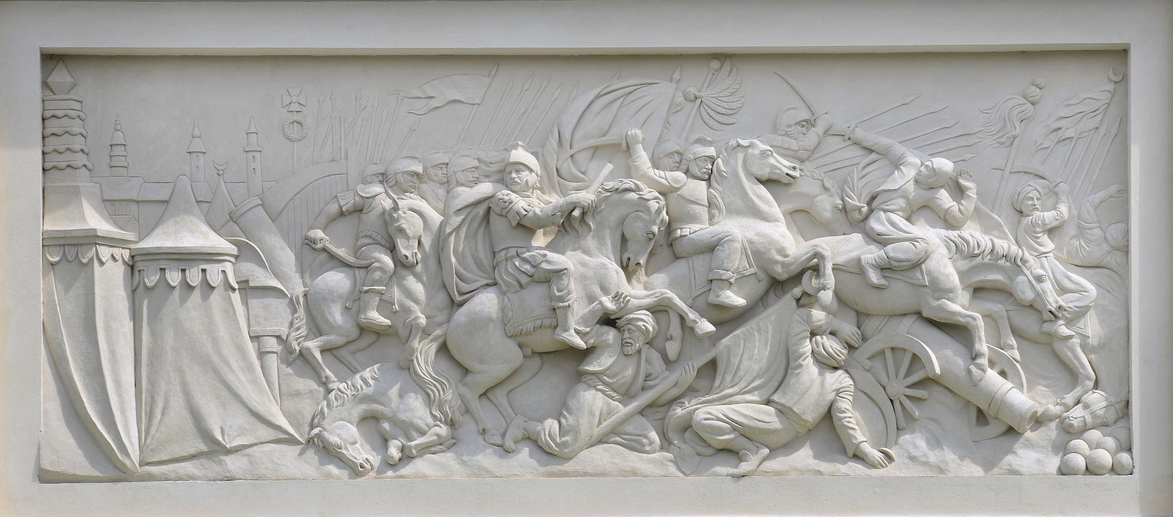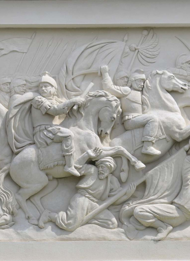 Płaskorzeźba przedstawiająca triumf Jana III umieszczona jest w centralnej części tzw. męskiego łuku triumfalnego.